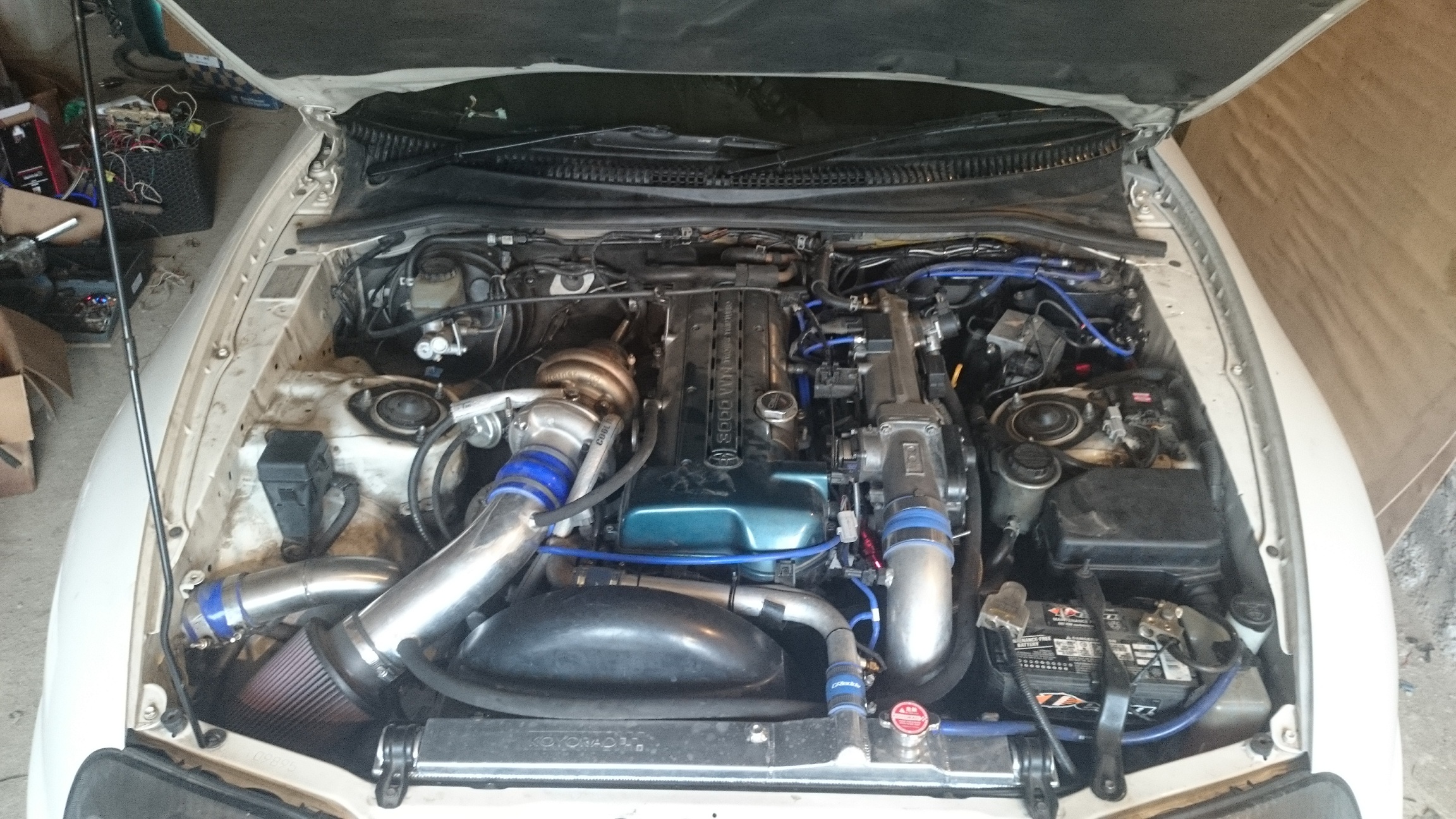 Ну...у нас всё поскромнее, зато с музыкой и проклеенным салоном, 12" сабвуфером в багажнике, непиленым стоковым бубликом от 1JZ-GTE ,обычным 98м бензином и давлением 1.2..1.3 , актуатор, будь он неладен, не дает дуть больше. Скоро я его поменяю на 2х камерный турбосмарт, надеюсь, решит проблему
