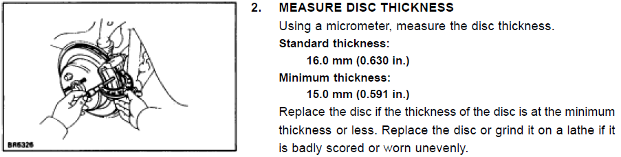 Состояние дисков — нормальное, износ около 1 мм. Мануал, насколько я понял, даже не открывался? 1 мм - это вся рабочая толщина тормозного диска. -------------------- Новые запчасти в наличии и на заказ. Оригинал, неоригинал, масла, спецжидкости.