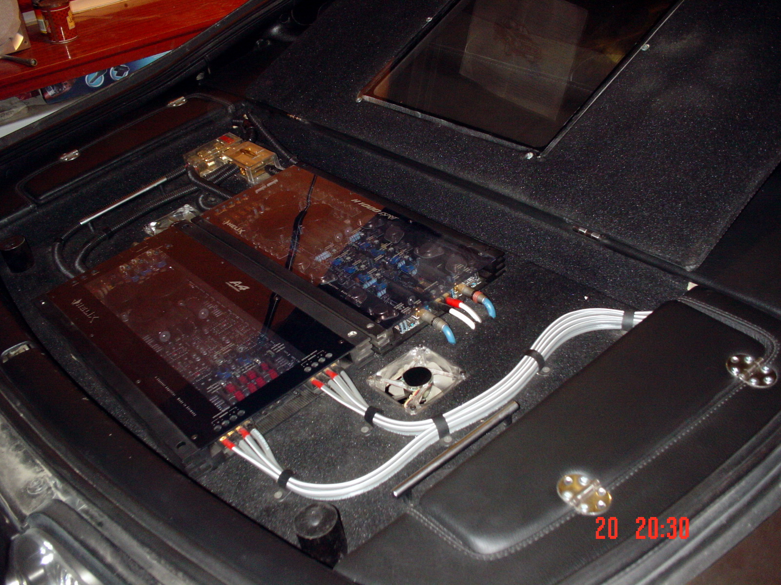 На фото ниче не видно но охлаждение автомата в стоке сделано через сток радиатор, тут видимо меняли радиатор и ришлось выносить куллер.