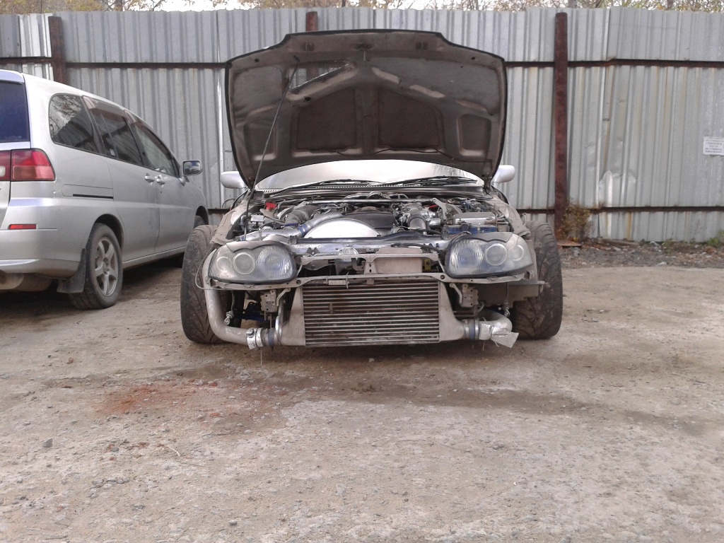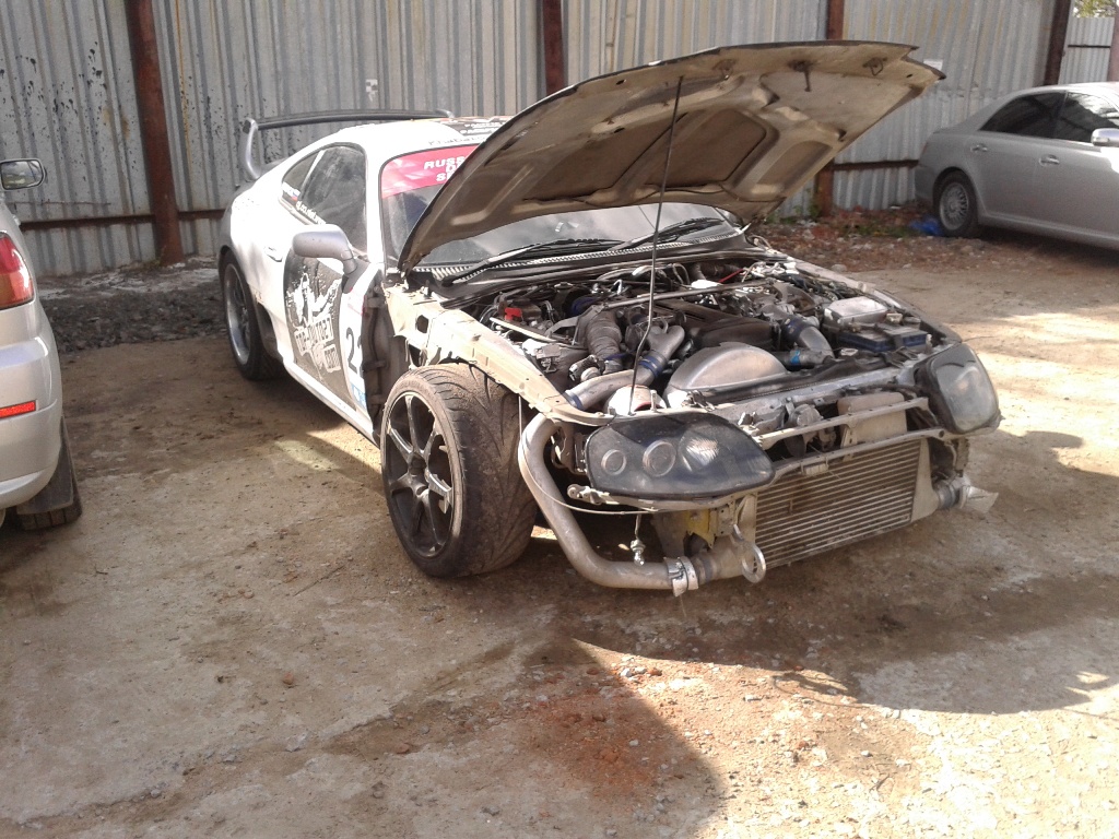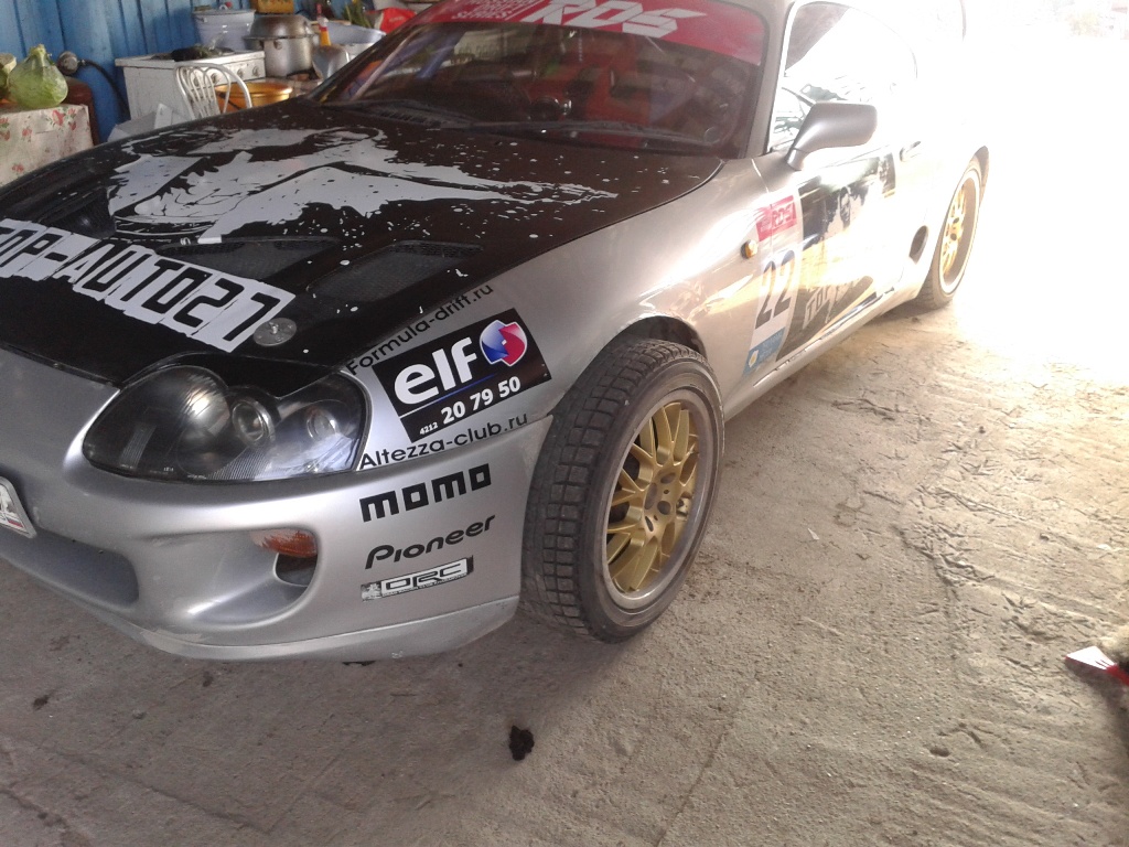 Теперь по соревнованиям-итог квалификации-последнее место!) НО, появился стимул идти дальше!!! Плюсы,которые пришли с передней подвеской: 1 Уменьшилось число оборотов руля до предела, при этом выворот стал больше-на практике очень острый руль и мгновенная реакция. 2 Улучшилось сцепление с дорогой-если я раньше после фуридаши еще 3 секунды ловил машину(перед сносило), то теперь этого нет-идешь как танк без сноса с траектории-а это уже огромный плюс! 3 Вырос угол-ну тут все понятно-выворот решает,но в то же время на третий раз появляется чувство "безнаказанности"-теперь ты можешь делать что хочешь, кидать авто в дикие перекладки и при этом давить газ в пол и знать-НЕ РАЗВЕРНЕТ!!! раньше я всегда держал маленький угол и был всегда против излишнего угла-это разворот 100 %-теперь тупо наслаждаешься-газ в пол и крути рулем(правда руль крутился тогда еще очень туго)) За все мероприятие меня развернуло 1 раз-когда я разчувствовался и полетел жопой вперед и у меня уперлась резина в нижние рычаги(да, размер 235 уже ни к чему). Сейчас в планах приобретение заднего комплекта-так как теперь все уже легко уезжают от бустапной Супры, а сцепление с дорогой задних колес ужасное-в итоге много шлифуешь и никуда не едешь! Кстати, передвигаться по дорогам общего пользования вполне комфортно-ожидал зависимость руля от "калеи" из за ширены переда, но этого не наблюдается, да и руль из-за того, что тугой-никуда не дергается. Шаровые соединения думаю прослужат долго-это ни тейновские шары в чашках-на них нет вертикальной нагрузки(ну тут время покажет-пока что это ИМХО). Ну и на последок пару фото. -------------------- JZA80/2JZ-GTE/SARD/650cc/GT3076R/BLITZ NUR spek/VEMS/R154/OS Giken STR 2CD Twin Plate Clutch Kit 1JZ-GTE/WISEFAB/TEIN type RA