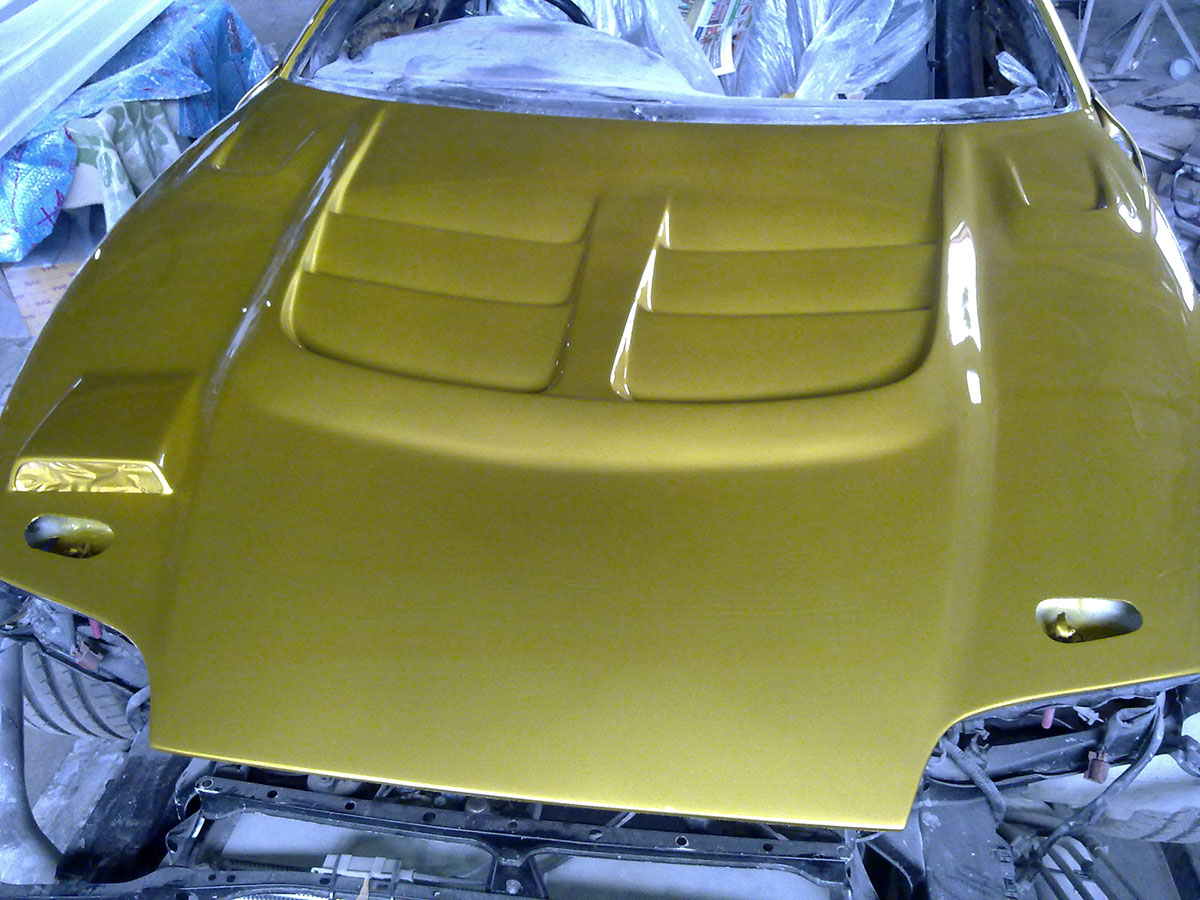 Примерно через год-полтора, решился загнать машину на полный перекрас. Сделали нормально, в нормальной конторе. По итогу машина стала золотистой и рестайлинговой внешне и внутренне)) Были установлены задние и передние габариты.