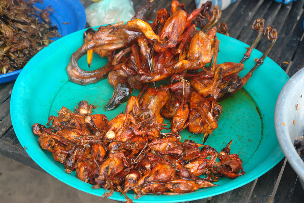В Камбодже жрут кузнечиков (больше похожих на саранчу), здоровых пауков, и местных птичек (типа голубей). Всех этих тварей жарят в масле как картофель фри. Не видел ни одного европейца, который отважился-бы попробовать, в общем я тоже не стал. Хотя уверен что не траванулся-бы, пища просто непривычная, но по сути ничего страшного. Фоток на самом деле нереальное кол-во и природы тоже, могу ещё выложить.