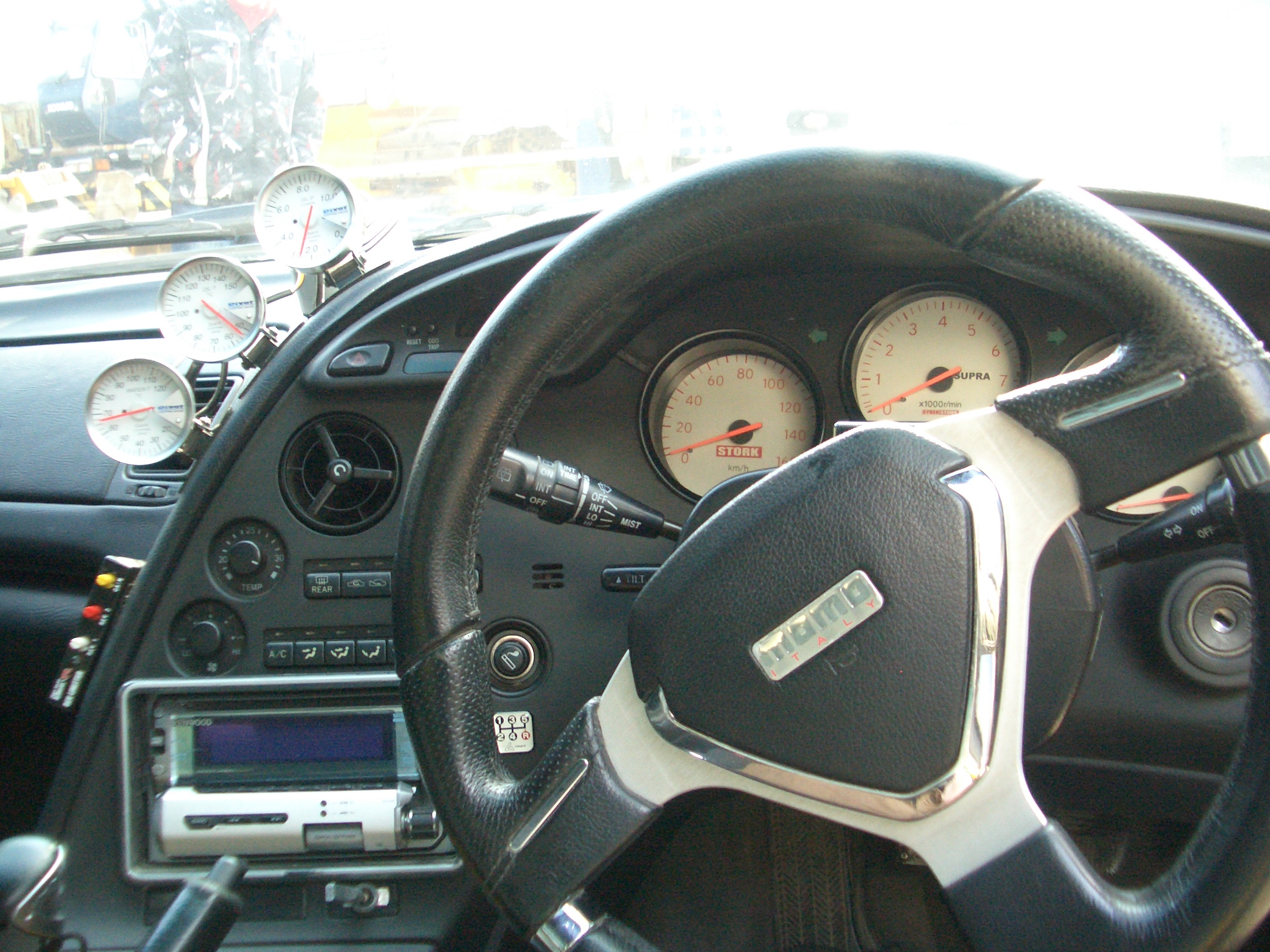 Разминусовка Термостат TRD 60гр Усиленная помпа Нулевик MAF-сенсор Apexi Свечи иридиум Apexi7 Комп перепрошит нет ограничений. Я набирал 260 больше страшно. Предыдущий хозяин говорит 280. Установлен Bee-R Limiter http://www.youtube.com/watch?v=tDGEo9OrGQc...feature=related можно баловаться но предназначен для регулировки оборотов при дрифте. Датчики на приборке Т.масла,охлаждающей жидкоси, давления масла, электронный спидомерт ВСЁ PIVOT. Руль MOMO. Короткая ручка переключения. МКПП возможно изменена. Отличная акустика мафон KENWOOD усилитель, шесть колонок, Саб 1000вт с подсветкой. Звукоизоляция салона KIXC Прямоток и большая банка Спорт стойки + комплект передних в подарок. Диски 18” разноширокие минусовые. Резина перед 235х45 зад 245х45 Задний редуктор 2-way for Getrag переделана под 5-ти ступку. Сцепление двойное керамика EXEDY Пластиковый капот. Карбоновые вставки на задние боковые стёкла. Салон не прокурен нет следов от углей. Кожа кроме передних сидений. Тонирована вкруг. Имеются недочёты по кузову краска побита спереди камушками на обвесах потерта краска. Мелкие коцки. по ходовке в идеале. Датчики Т масла и жидкости + кислородники новые – заменены в 2009. тел. 8-962-154-55-39 |