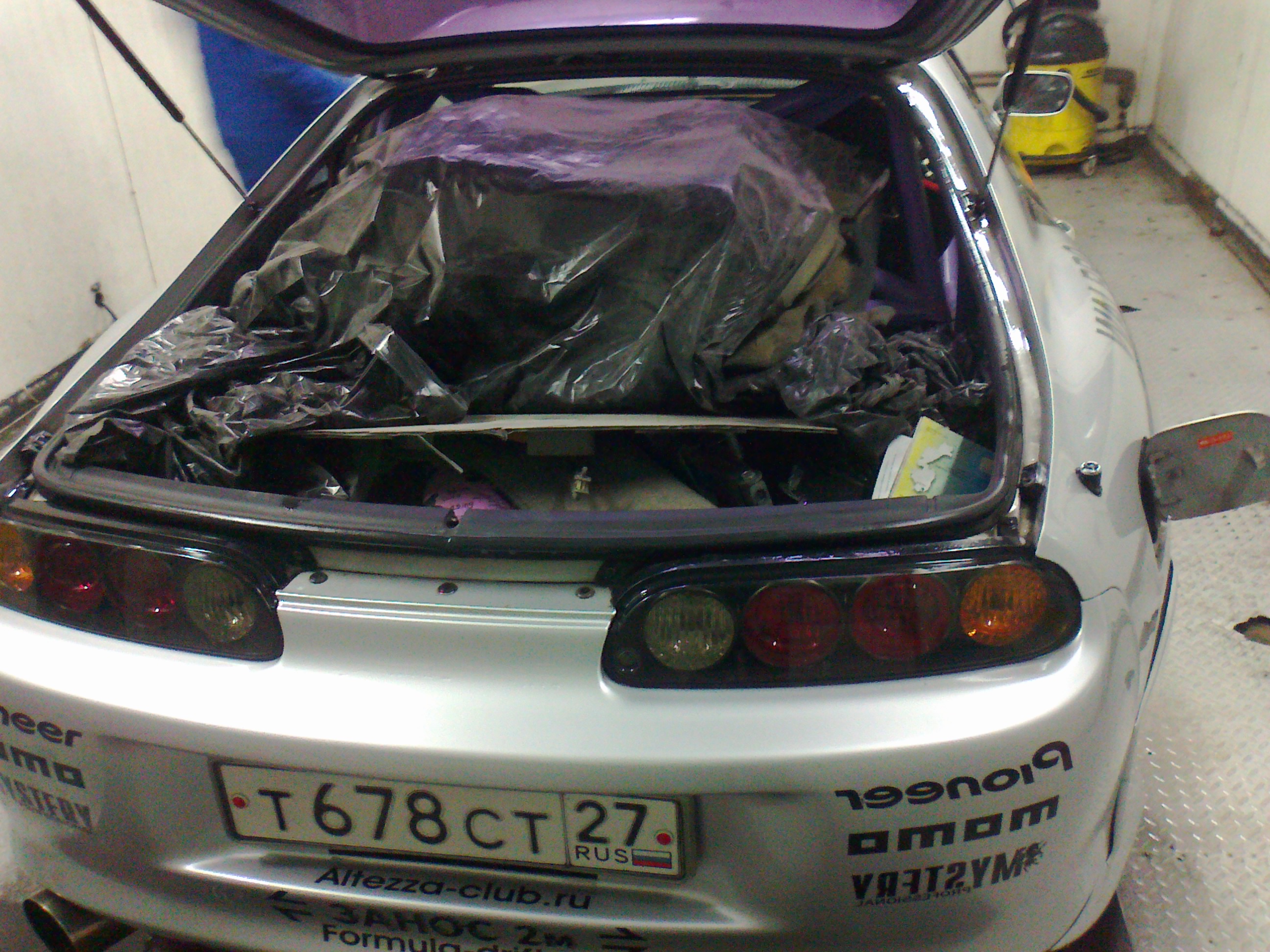 По компонентам все просто: 1 2 магнитоллы: ДВД JVS и Pioneer 88rs именно для обработки звука. 2 пищалки на перед(чтобы сцена хотя бы не уехала 3 ну и простенький саб. В итоге поехал за обновками, и в этот же день вечером все поставил. Еле как засунул на место сидельные места заднего сидения. спинку же вмонтировать было не реально. ее заменили пьедесталом под усилитель и конденсатор. Сначало был куплен плоский саб herts. В принципе нормальное приобретение для тех, у кого проблеммы с местом (любой суправод 300 номинал 600 пик-меня в принципе устраивает. подключил его мостом-пришлось урезать мощность примерно на половину. Самое интересное что такая установка не мешает обзору. Пищалки мид и саб висят каждый на своих коаксиалах, и по чистотам и громкости легко регулируются от пионера(благо он это может достойно)...В итоге получилось такое ощущение, что все компоненты стоят как обычно-впереди и нет никакого намека на звук из-за спины-что и требовалось. Осталось только отрегулировать временные задержки и можно наслаждаться музыкой п.с. еще бы заправить кондей, чтобы окна были закрыты и вообще был бы шик!!! Сообщение отредактировал pioneer - 7.7.2012, 7:12 -------------------- JZA80/2JZ-GTE/SARD/650cc/GT3076R/BLITZ NUR spek/VEMS/R154/OS Giken STR 2CD Twin Plate Clutch Kit 1JZ-GTE/WISEFAB/TEIN type RA