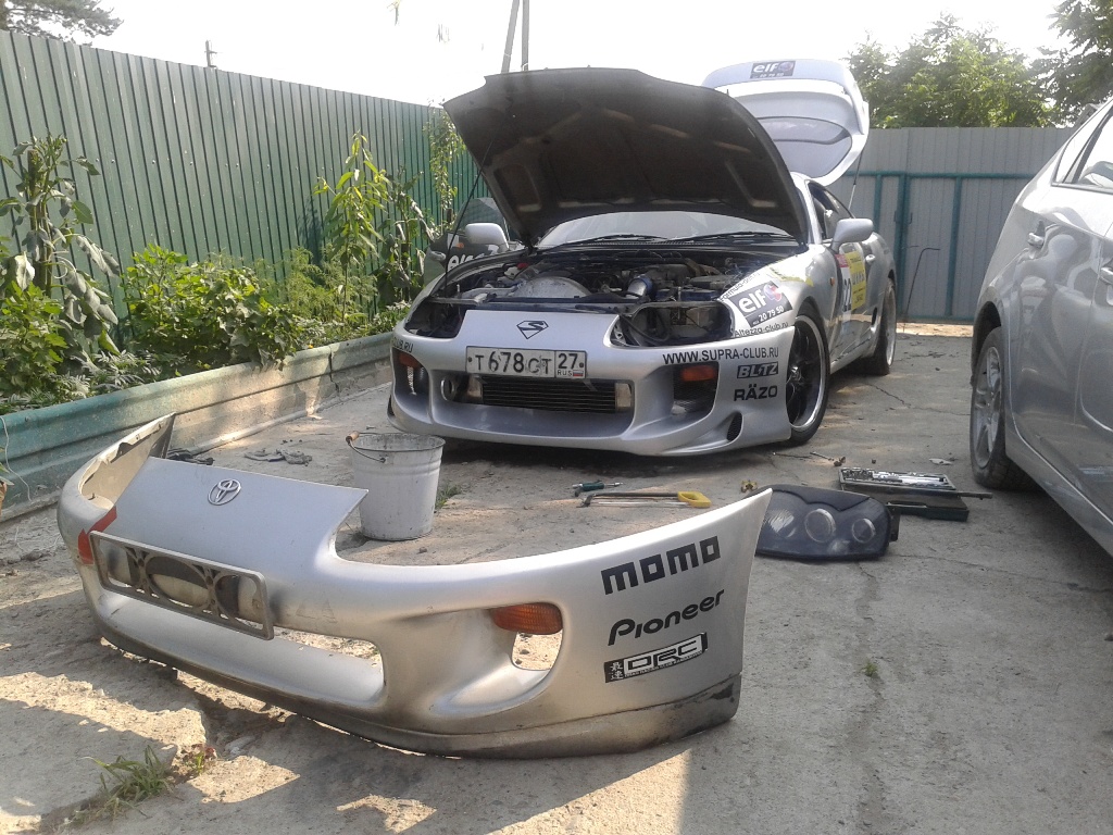 История покупки: Супра моя вторая по счету машина-до этого была т.Альтезза с 2JZ-GE на R154. Потихой тянулся к дрифту, начал участвовать в местных соревнованиях. ![]() Зимой катался на альтеззке, скупал необходимые детальки для дрифта, и ничего не предвещало перемен, как вдруг ближе к весне интерес к авто просто остыл (4-й год владения все таки был)-динамики не хватало, да и форма авто надоела, ну и индивидуальность альтеззы с каждым днем терялась(сейчас их в хабаровске ну очень много!)Думал собрать 1.5 джей но чет бюджет вообще прям не радовал-да и не хотелось вкладывать столько денег в авто, которое просто уже надоело...Начал присматриваться-Ниссан сразу отпадает(не охото как то покупать себе головняк:))-сначала глаз пал на мазду rx-7 -но чет столько наговорили на счет проблемности двигла-что как то сразу передумал. В итоге подумал о Супре(Да-да - как и у многих Супра была мечта детства и юношества-но чет цена раньше на них была прям пипец-помню у нас на рынке стояли 2 Супры-одна GE , другая GTE-и все стоили по 20т. зеленки) В общем начал обшаривать дром (искал же для свапа), а паралельно распродовать все тюнячки с Альтеззы(пол балкона:)) - посмотрел одну в Хабаровске(красная, вся с музыкой такая, но в жопу вдаренная была конкретно)-все остальные были в приморском крае-короче поехал смотреть.Во Владивостоке нашел одну беленькую-370т.р. идеальная такая(правда друг сразу сказал что морду вварили от другой-шев был очень неаккуратный), тормаза блатные, коробка, салон такой аккуратный-в общем загорелся-начили пробивать документы-блииин, какое-то ограничение на ней в базе-в общем не судьба.Нашли еще какое-то объявление и поехали смотреть ![]() ![]() Стояла она на зимовке на открытом воздухе, вся в снегу, салон весь порепаный, обвес обломаный местами, вся грязная...в общем после наполерованной беленькой ну вообще не айс, но кузов весь ровный, двиг более-менее живой, стойки тейн, торсен, распорка, литье разноширокое на 18 с нормальной(летней:) резиной и все ровно с документами...не взяли... Сели и поехали опять в хабаровск(800км) Приехал домой, подумал, нашел Супру на разборке с нормальным салоном и на следующий день поехал опять во Владивосток:) за мечтой. 23 февраля серая (уже моя) Супрочка была уже в Хабаровске:) Супра-авто не для дрифта! Сразу скажу-Супра на W58 в стоке прет ну очень даже не плохо-после 2 джея VVT-i на R154-вообще пуля:)Мотор крутильный какой-то казался после ввт-й-ного, да и коробка(первые 3 передачи в особенности) короткая. Альтезза продалась, но уже с 58 коробкой, а в Супру переехала 154 вместе с металическим сцеплением(еще на Альку заказывал:)) В общем убрал все мелкие косяки с обвеса, поменял бронепровода, поставил летнюю резину и поехал пробовать свое авто в дрифте. Все знакомые и друзья в один голос-Супра-авто не для дрифта! И вы знаете-они все правы-выворот маленький, машину очень легко разворачивает, Супра в дрифте ошибки не прощает! Супра едет на соревнования-сезон открылся:) ![]() Дальше квалификации обычно никогда не проходил-привыкнуть к поведению авто было очень сложно - пустить Супру в занос дело не простое(все таки авто для кольца), выворот не позволяет держать большой угол(переборщил, и опа - разворот), перекладки делать очень сложно-морду вечно не удается пустить в нужное русло-этапа 3 в одщем ездил как суперновичек:( Мощности GE двигателя хватало(у нас тут как то с площадк