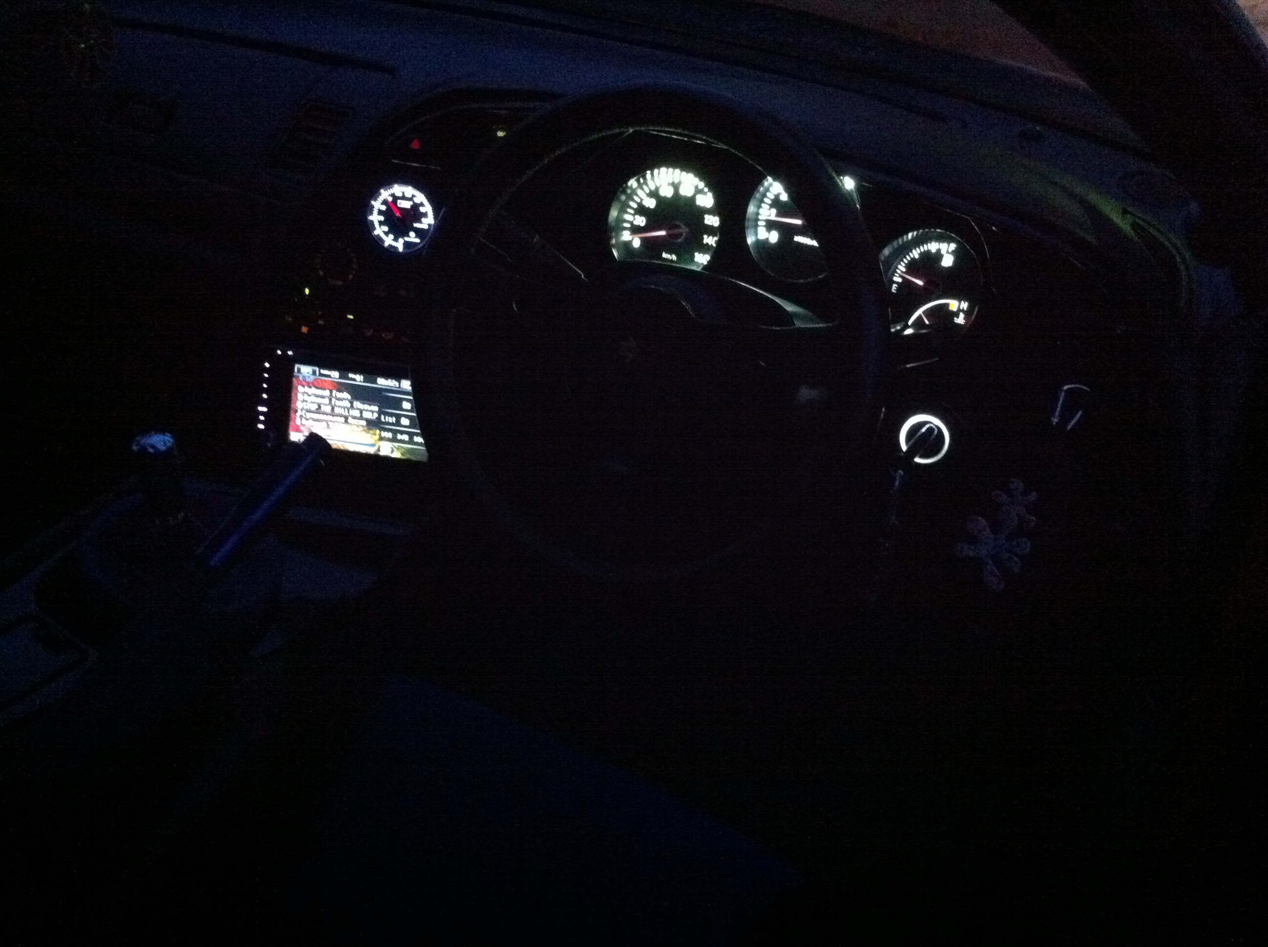 Так как машина пришла ко мне с японской магнитолой, решил купить что-то по-лучше с большим экраном и более менее брэндовое…Взял Пионер 2din с сенсорным экраном. Решил переделать подсветку приборной панели и заменить часы, ко всему поставил в нишу воздуховода вольтметр(полезная штука однако) Прошу сильно не пинать, мне так в любом случае нравится больше! К весне хочу поставить датчики давления и температуры масла…Подсветку делал сам с помощью колец из светодиодов. Пара фоток процесса и результата. Подсветку кнопок печки тоже переделал за зиму, как соберу, сфоткаю и выложу, если кому интересно… |