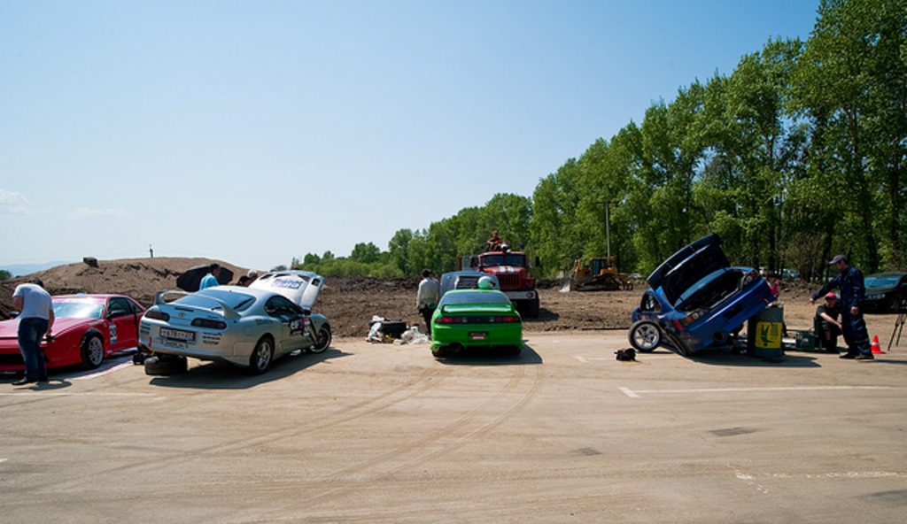 История покупки: Супра моя вторая по счету машина-до этого была т.Альтезза с 2JZ-GE на R154. Потихой тянулся к дрифту, начал участвовать в местных соревнованиях. ![]() Зимой катался на альтеззке, скупал необходимые детальки для дрифта, и ничего не предвещало перемен, как вдруг ближе к весне интерес к авто просто остыл (4-й год владения все таки был)-динамики не хватало, да и форма авто надоела, ну и индивидуальность альтеззы с каждым днем терялась(сейчас их в хабаровске ну очень много!)Думал собрать 1.5 джей но чет бюджет вообще прям не радовал-да и не хотелось вкладывать столько денег в авто, которое просто уже надоело...Начал присматриваться-Ниссан сразу отпадает(не охото как то покупать себе головняк:))-сначала глаз пал на мазду rx-7 -но чет столько наговорили на счет проблемности двигла-что как то сразу передумал. В итоге подумал о Супре(Да-да - как и у многих Супра была мечта детства и юношества-но чет цена раньше на них была прям пипец-помню у нас на рынке стояли 2 Супры-одна GE , другая GTE-и все стоили по 20т. зеленки) В общем начал обшаривать дром (искал же для свапа), а паралельно распродовать все тюнячки с Альтеззы(пол балкона:)) - посмотрел одну в Хабаровске(красная, вся с музыкой такая, но в жопу вдаренная была конкретно)-все остальные были в приморском крае-короче поехал смотреть.Во Владивостоке нашел одну беленькую-370т.р. идеальная такая(правда друг сразу сказал что морду вварили от другой-шев был очень неаккуратный), тормаза блатные, коробка, салон такой аккуратный-в общем загорелся-начили пробивать документы-блииин, какое-то ограничение на ней в базе-в общем не судьба.Нашли еще какое-то объявление и поехали смотреть ![]() ![]() Стояла она на зимовке на открытом воздухе, вся в снегу, салон весь порепаный, обвес обломаный местами, вся грязная...в общем после наполерованной беленькой ну вообще не айс, но кузов весь ровный, двиг более-менее живой, стойки тейн, торсен, распорка, литье разноширокое на 18 с нормальной(летней:) резиной и все ровно с документами...не взяли... Сели и поехали опять в хабаровск(800км) Приехал домой, подумал, нашел Супру на разборке с нормальным салоном и на следующий день поехал опять во Владивосток:) за мечтой. 23 февраля серая (уже моя) Супрочка была уже в Хабаровске:) Супра-авто не для дрифта! Сразу скажу-Супра на W58 в стоке прет ну очень даже не плохо-после 2 джея VVT-i на R154-вообще пуля:)Мотор крутильный какой-то казался после ввт-й-ного, да и коробка(первые 3 передачи в особенности) короткая. Альтезза продалась, но уже с 58 коробкой, а в Супру переехала 154 вместе с металическим сцеплением(еще на Альку заказывал:)) В общем убрал все мелкие косяки с обвеса, поменял бронепровода, поставил летнюю резину и поехал пробовать свое авто в дрифте. Все знакомые и друзья в один голос-Супра-авто не для дрифта! И вы знаете-они все правы-выворот маленький, машину очень легко разворачивает, Супра в дрифте ошибки не прощает! Супра едет на соревнования-сезон открылся:) ![]() Дальше квалификации обычно никогда не проходил-привыкнуть к поведению авто было очень сложно - пустить Супру в занос дело не простое(все таки авто для кольца), выворот не позволяет держать большой угол(переборщил, и опа - разворот), перекладки делать очень сложно-морду вечно не удается пустить в нужное русло-этапа 3 в одщем ездил как суперновичек:( Мощности GE двигателя хватало(у нас тут как то с площадк
