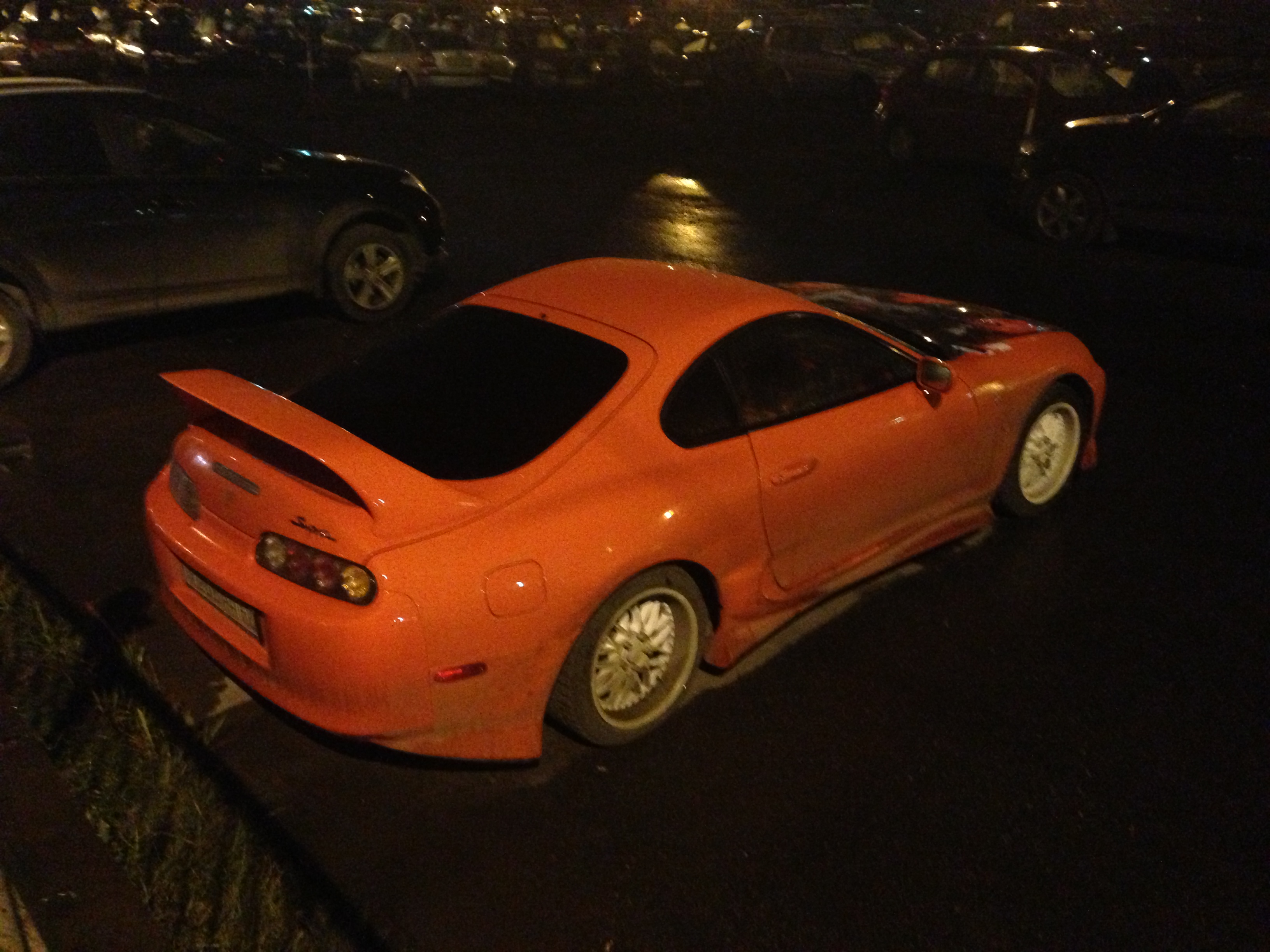 Привет, видел твою машинку на стоянке на пр. Народного Ополчения... Едем с другом, вдруг он как завопит: "Рыжая Супра", разворачиваемся-подъезжаем, действительно:) Цвет кузова классный, только модель и цвет колес все портят.