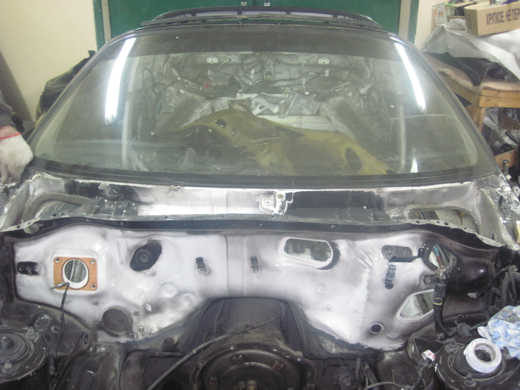 1) Вырезаем моторные щиты. 2) Прокидываем косу мозга. 3) Находим отличия. 1. Вырезаем моторные щиты. 1.1. Врезаем моторный щит на машине маленькой болгаркой. ( УШМ с толшиной диска в 1мм.) 1.2. Высверливаем точечную сварку с леворукого щита дрелью. (места точечной сварки видны) 1.3. Подгоняем леворукий щит на новое посадочное место. 1 фото леворукий щит, 2ое фото правый! |