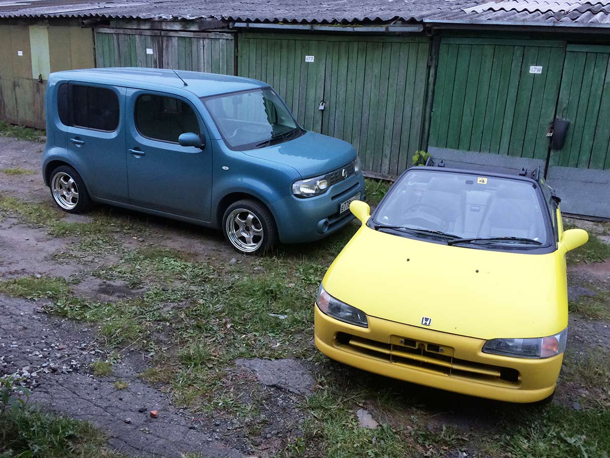 Honda Beat 95 года в комплектации Version Z На машине нет ни ABS, ни SRS. Гидроуселителя нет тоже, вообще, но при этом на ходу авто рулится отлично. Стоит родная музыка Gathers, опция вроде как. Антенна просто вытаскивается из места установки, оторвана. Отсутствует CD чейнджер. Кожаные сидения, у обеих регулируется отъезд, а наклон только у водителя. Электронные стеклоподъёмники. Выпуск Fujitsubo, внушает! Стойки, вероятно, родные. Чуток скрипят, но с машиной в довесок идут новые, по словам продавца. Стоят родные опциональные диски, литьё. Перед R13, зад R14. Тёмные приборы - особенность комплектации. Авто перекрашено, изначально цвет тёмно-зелёный. Противотуманки убиты и потеряны. Кондиционер не работает, видимо компрессор ушёл в небытие. Крыша чуть-чуть протекает - пара капель за всю поездку. Заднее пластиковое окно под замену, всё мутное. В салоне очень грязно, а когда включили сильный фронтальный обдув, то чуть не задохнулись пылью. Отсутствует докатка. Снизу авто не смотрел, потому не ясно как там дело со ржавчиной и в каком состоянии подвеска. Тормозит авто средне, всё работает. Предложил парню из Екатеринбурга купить его Beat. Обговорили состояние, поторговались и по рукам. В бортовике бывшего владельца понятно, что авто может быть в любом состоянии, т.к. периодически укатывалось в зимних гонках. Передний бампер потому и находится в состоянии "сжальтесь, братцы, пристрелите меня!". Ну и потому нет тех же туманок. Чуток есть жор масла, но за 2000 км мы долили не больше 0.5 литра. Для меня пока не критично, позже всё вылечим. Едет машина интересно, многие в курсе, что крутится авто до 9000-10000 об/мин. Из-за отсутствия турбины обгонять приходиться чуть дольше, но особых проблем на трассе с этим не возникло. Кстати, размеры позволяют выглянуть из-за фуры для разведки, при этом пассажир может спать, если конечно он почти труп и ему уже всё на свете пофиг 140 км/ч набирает без проблем, не так шустро, конечно, но набирает, а дальше отсечка. В общем если, то состояние на 4 или 4-, кому как, но добраться своим ходом из Екатеринбурга не составило труда, хотя это и не просто. Думаю, что такие же ощущения будет после 2-3 кругов по МКАДу на карте В планах иметь красивый авто на долгие года. Со временем заменю всё, что возможно, запчастей море и стоит всё "копейки". Рвать кого-то желания особого нет, так что в приоритете сток с небольшими тюнячками. p.s. чуть позже про дорогу из Екатеринбурга в Москву Сообщение отредактировал moviegear - 16.6.2014, 12:29 |