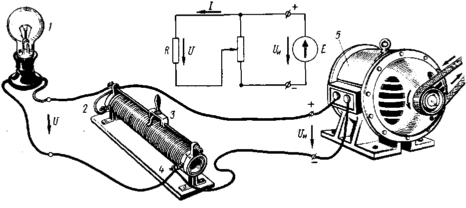 В общем не знаю, что там "не совсем так" но все реостаты работают по одному принципу, просто имеют разную конструкцию. Цитата Схемы включения реостатов. Реостат 2 (рис. 17) может быть включен последовательно в цепь между источником 1 и приемником 4 электрической энергии. В этом случае при изменении сопротивления реостата, т. е. при перемещении подвижного контакта 3, изменяется сила тока в приемнике. Этот ток проходит только по части сопротивления реостата. Однако реостат можно включать в цепь таким образом, чтобы ток проходил по всему его сопротивлению, а к приемнику ответвлялась только часть тока источника. В этом случае два крайних зажима 2 и 4 реостата (рис. 18) подключают к источнику 5, а один из этих зажимов, например 4, и подвижной контакт 3 реостата — к приемнику 1. Очевидно, что при таком включении к приемнику будет подаваться напряжение U, равное падению напряжения между зажимом 4 и подвижным контактом 3 реостата. Следовательно, передвигая подвижной контакт реостата, можно изменять напряжение U, подводимое к приемнику, и силу тока в нем. Напряжение U представляет собой только часть напряжения Uи на зажимах источника. Реостат, включенный по схеме рис. 18, называется делителем напряжения, или потенциометром. Рис. 17. Схема последовательного включения реостата в цепь приемника электрической энергии Рис. 18. Схема включения реостата в качестве делителя напряжения Сообщение отредактировал DENYKOR - 17.3.2015, 1:15 -------------------- |
