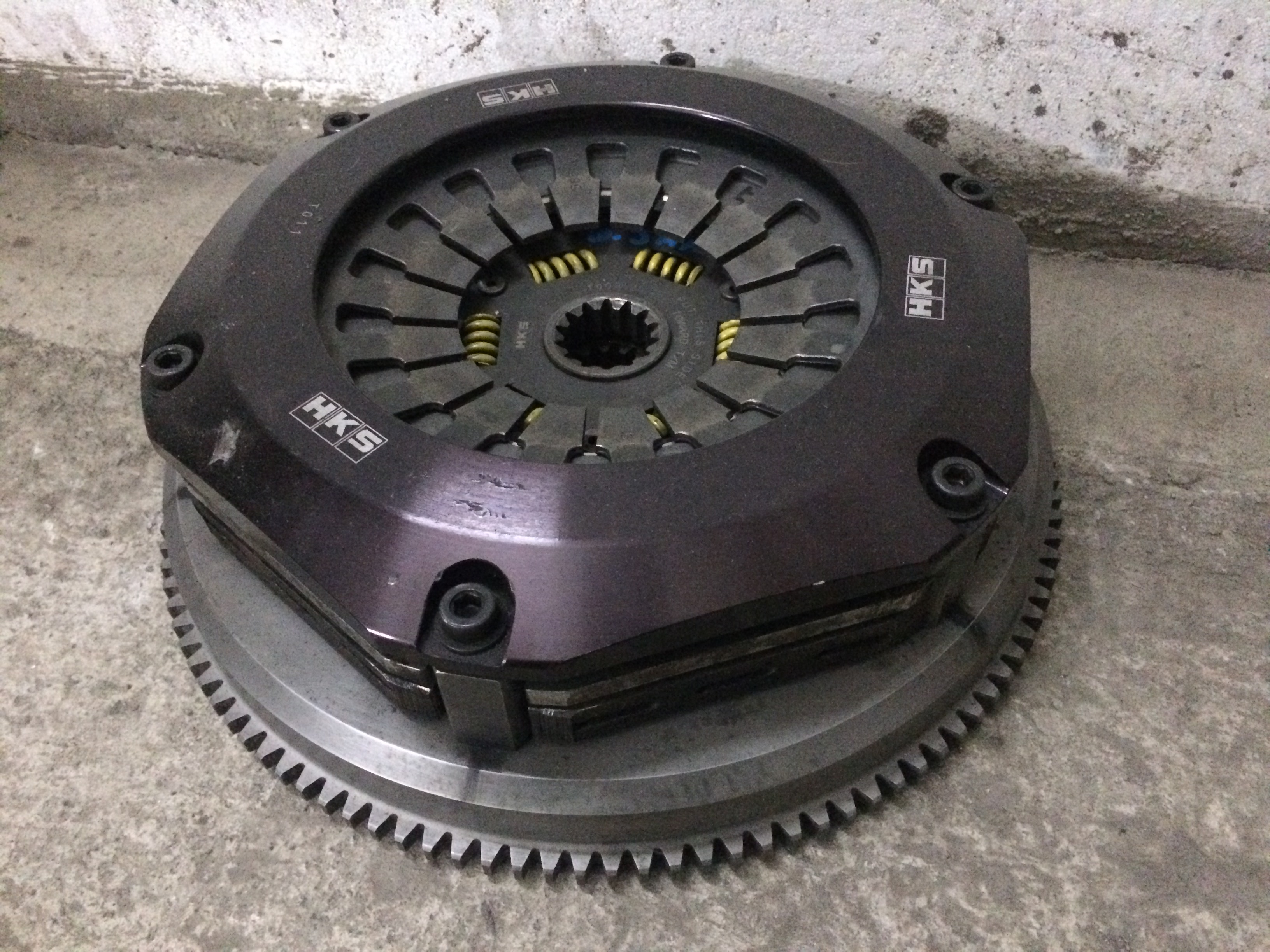 Наконец то руки дошли до сцепления. Остановил свой выбор на комплекте сцепления HKS LA Clutch Twin Plate для трансмисии V160/161. Сцепление б/у, под стандартный обратный выжим. В очень хорошем состоянии. Жирные диски, не заезженные пластины и маховик. Коробление поверхностей минимальное. Усиленная органика.