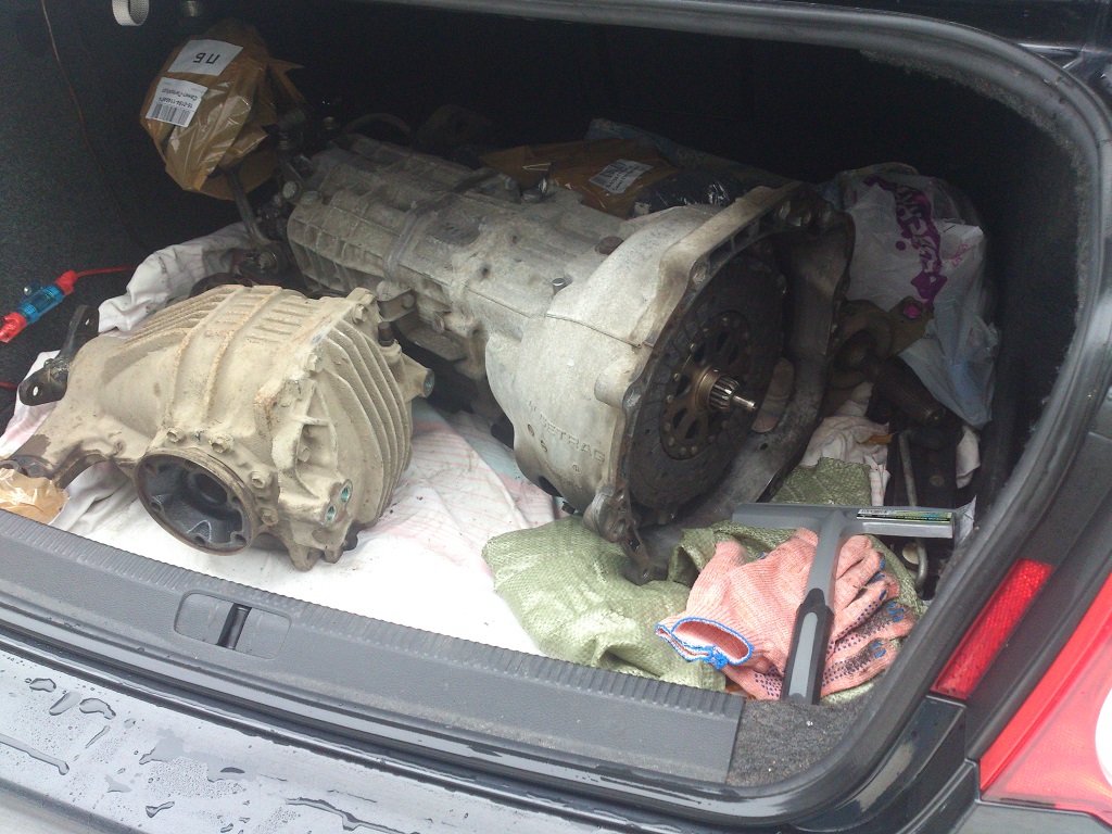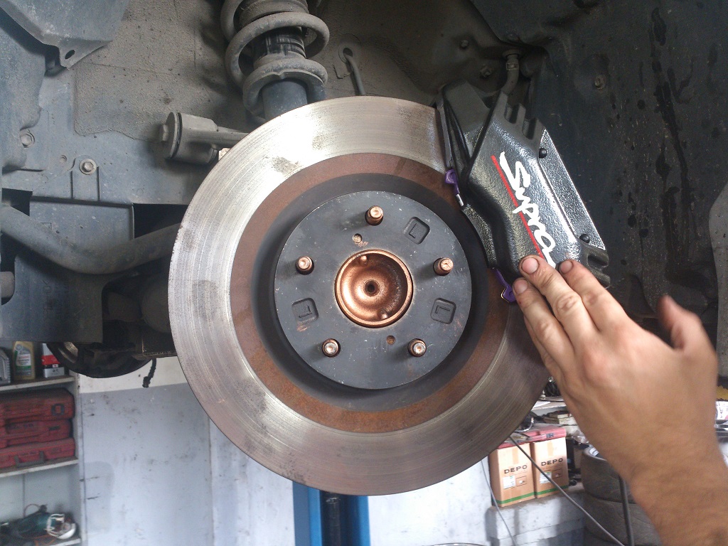 Понимаю, что есть проблемы с мотором. Очень вялый... Будем колдовать дальше. Из известных мне проблем: 1. Чек 2. Очень сильно заужен даунпайп, гофра изнутри в диаметре сантиметра 2 Решение проблемы №2 привело к конкретному результату: турбины начали нормально дуть, машина поехала. С чеком пока не решил, т.к. не хватает времени добраться до Е-Менеджа и вырезать его нафик. Но, думаю, что недолго ему осталось висеть Колесные диски на большие тормоза встали, но впритирочку, поэтому выточил проставки 3мм: