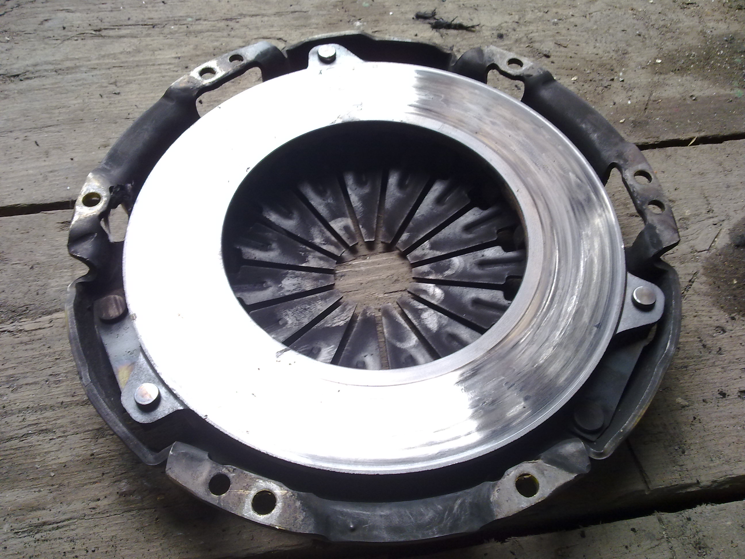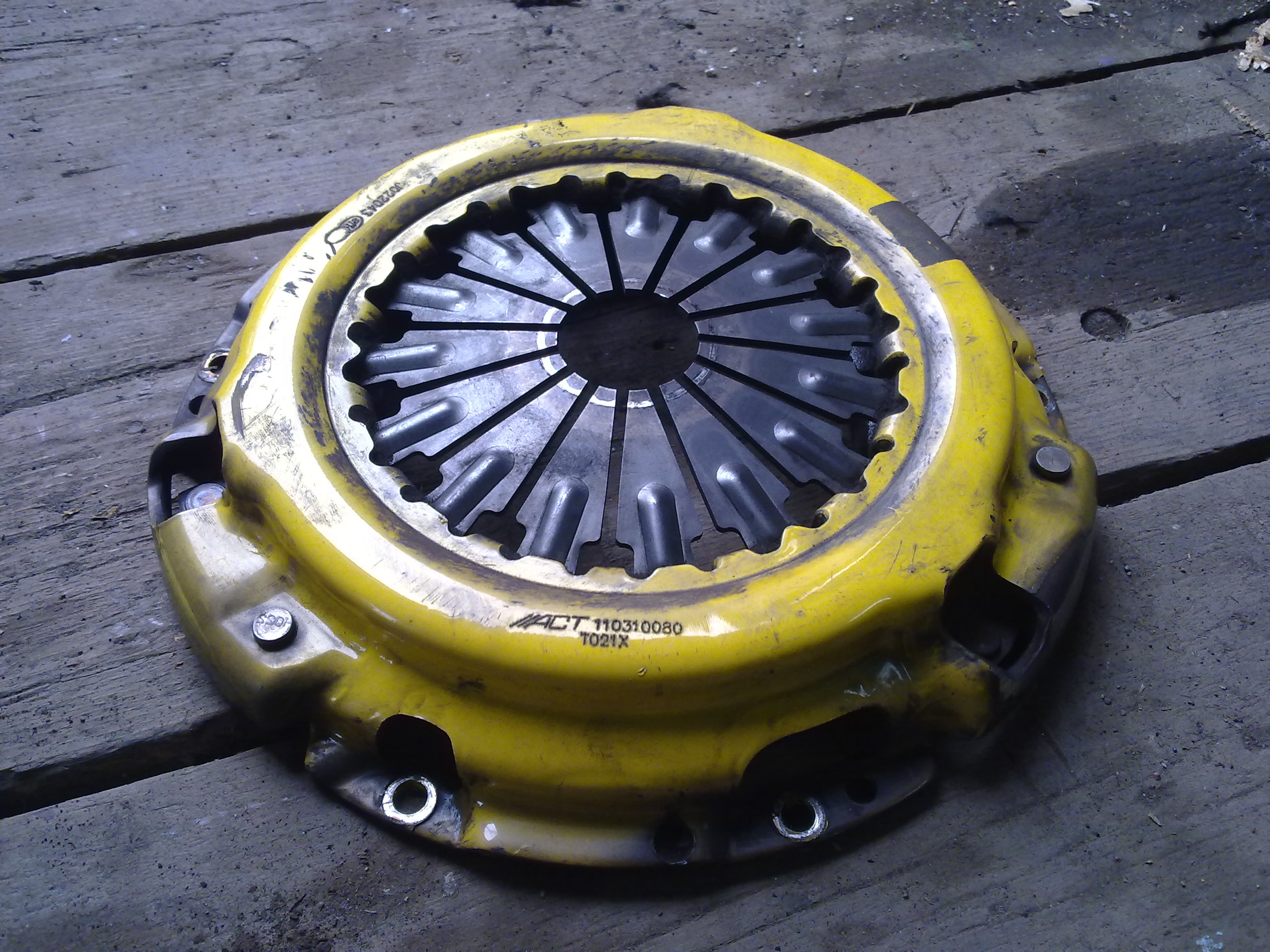 Есть тюн корзина ACT T021X под керамический диск и маховик облегченный, вроде бы когда новое было все покупалось комплектом (корзина, диск, маховик и подшипник) но в объявлениях о продаже только корзина с диском (тогда что за маховик х.з.). До меня дошло только корзина с маховиком Хочу затолкать оригинальный диск сцепления в этот "бутерброд" и отсюда вытекают следующие вопросы: 1. На сколько керамический диск тоньше органики? (на разницу дисков хотел проточить рабочие плоскости маховика и корзины. Или можно не точить а разжать диск лишь только регулировкой хода.) 2. Что за маховик? От стока может толщиной отличаться? Или все что описал выше полная ..... и придется покупать сток сцепу в сборе? 3. Если поставить корзину на маховик, то между плоскостями расстояние 5мм. Сколько нужно для стокового диска? фото добра: корзина |