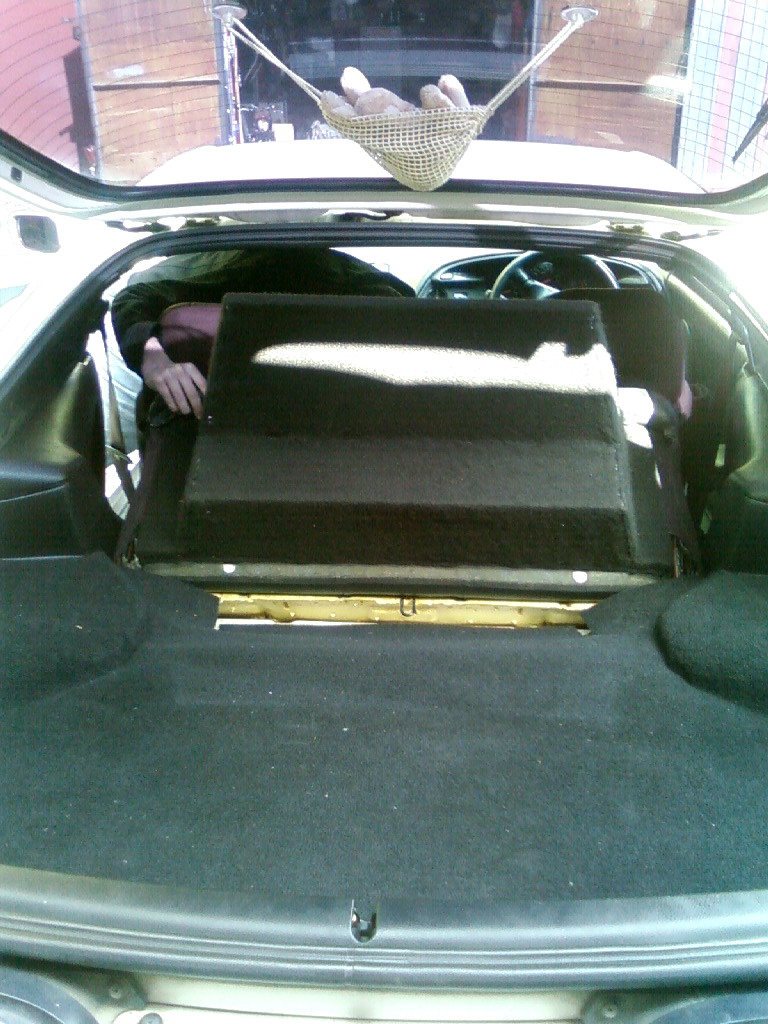 Впорос такой в студию, по поводу саба, какие варианты кто делал? есть у меня динамик 12" кенвуд, по заводпараметрам его лучше либо в свободном пространсвте либо ящик закрытый 45 литров, голову сломал как разместить его в багажнике, желаельно без особого потери места, (запаски нет у меня)