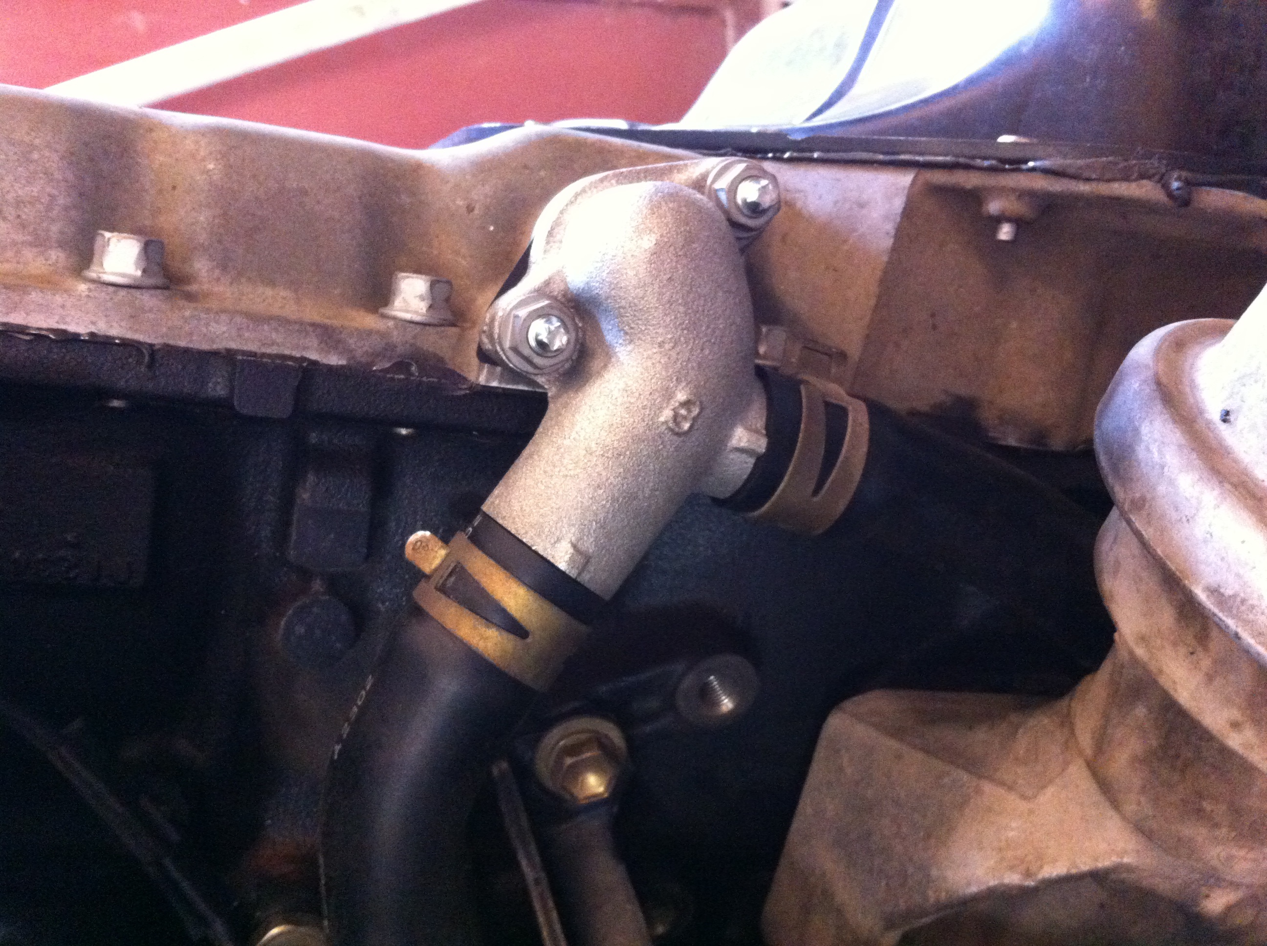 Поставили сегодня поддон, прикрутили у-обр. тройник, поставили новые шланги к нему, а так же заменили опоры двигателя.