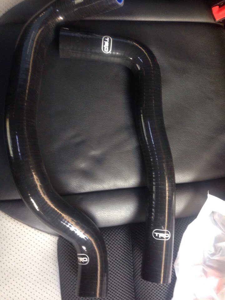 Купил черные силиконовые патрубки. Один пустил на лоскуты, другой пойдет вниз.