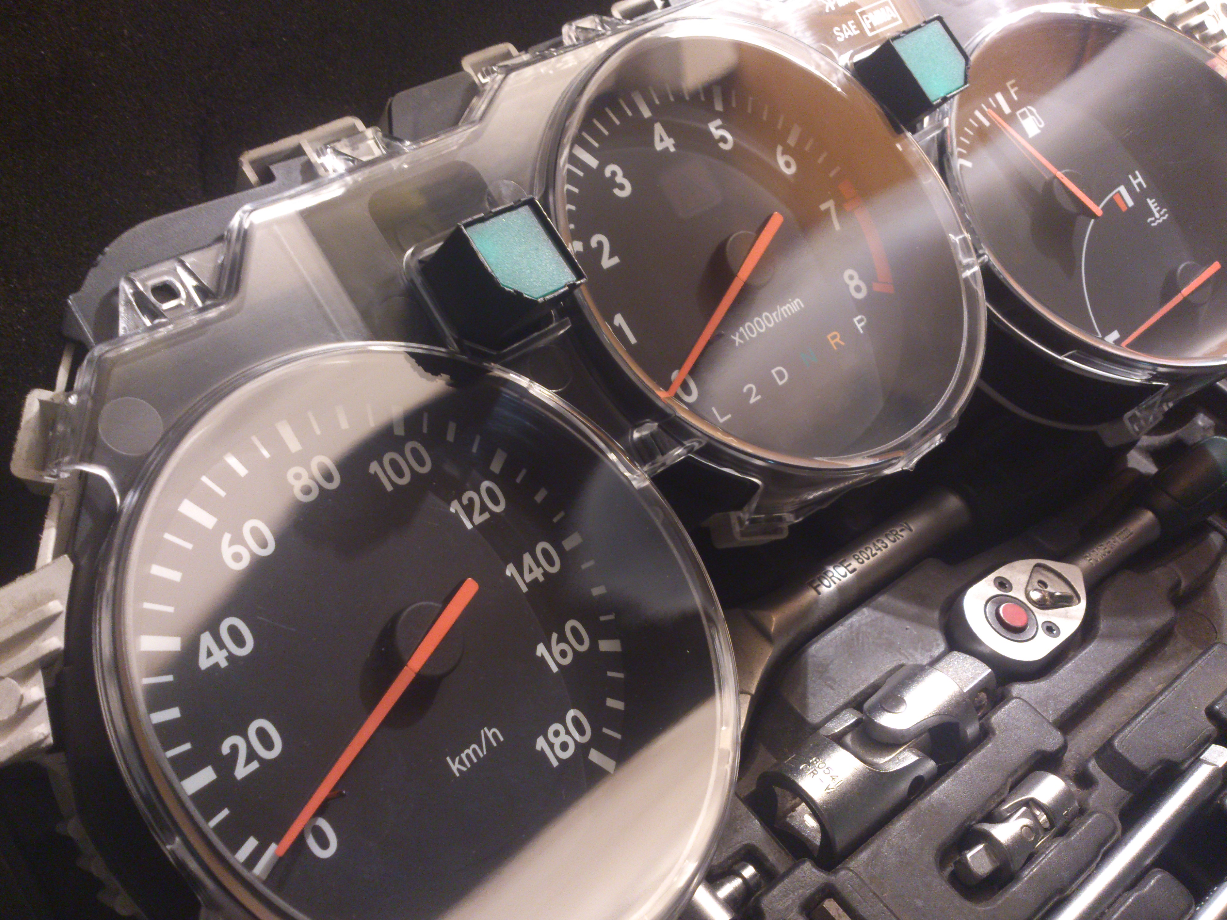 Новый. Там пыли был слой на приборах очень приличный.