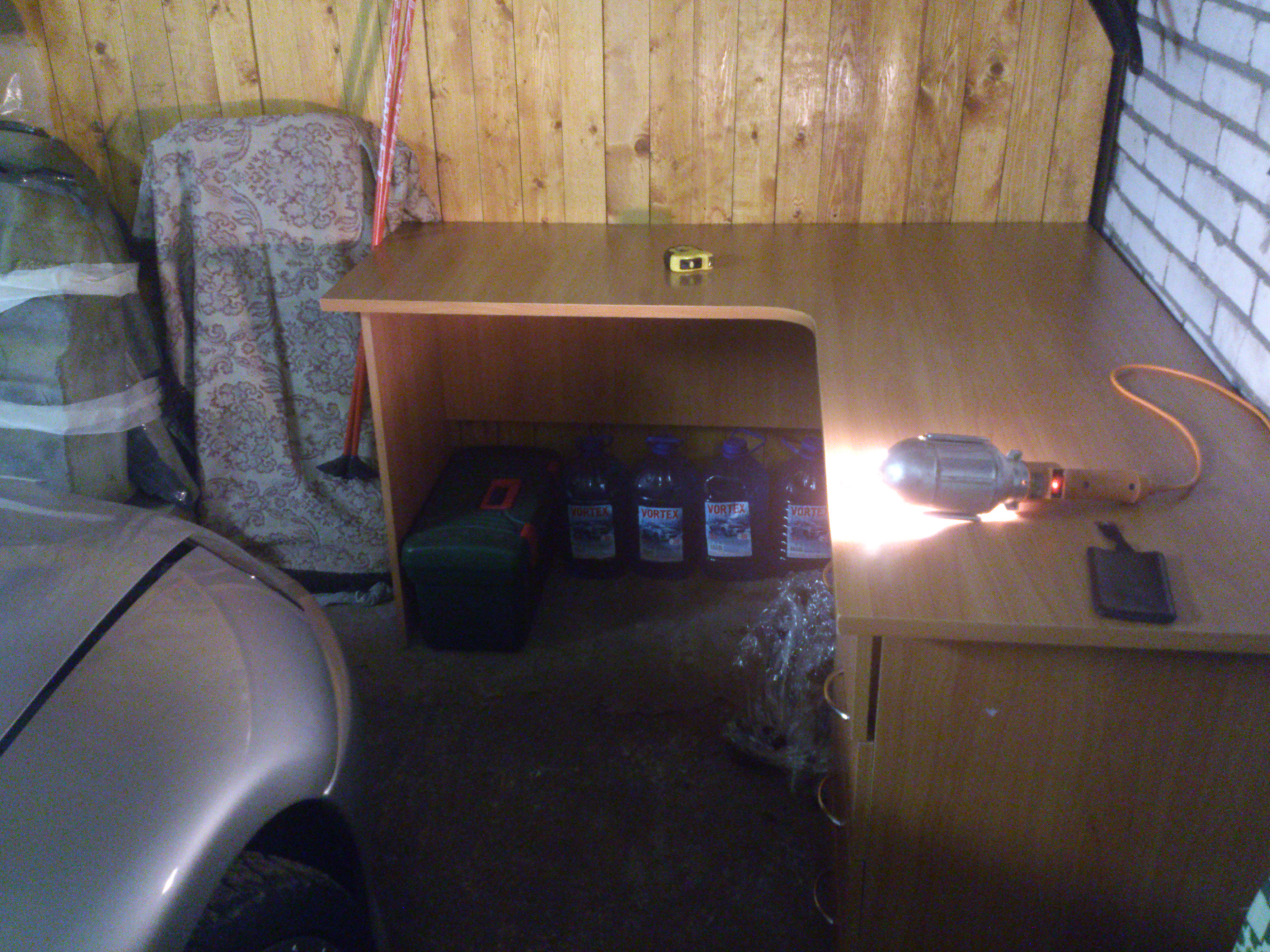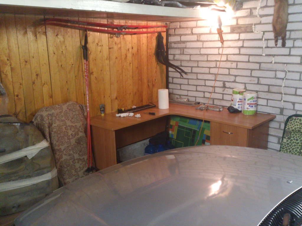 Чик Продолжаю обустраивать гараж параллельно. Достался стол с работы на халяву. На мой взгляд, в гараже он вписался отлично) -------------------- Роха / @Tuzhikov_Dima