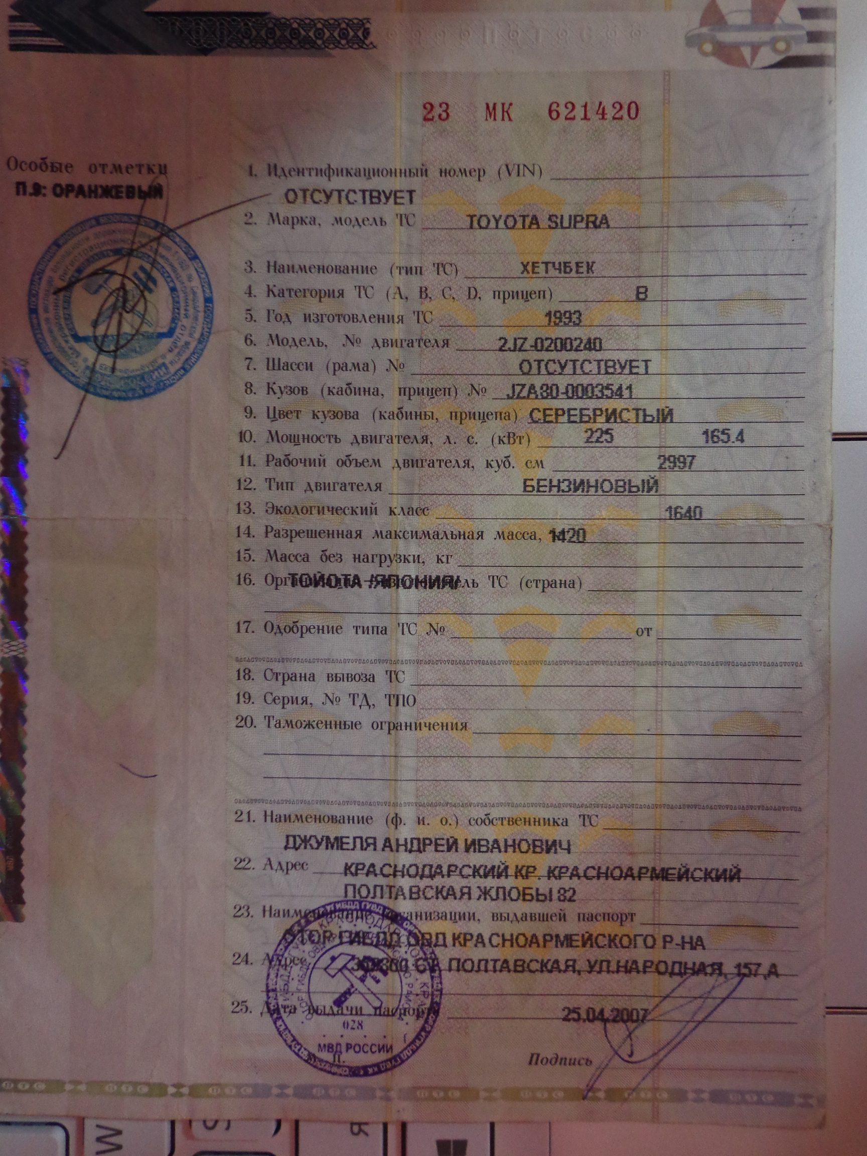 Модель автомобиля: Toyota Supra Год выпуска: 1993 Общий пробег автомобиля: 280 000 км. покупал с пробегом 263 000 км. Двигатель: 2JZ-GE non-VVT-i Тип коробки переключения передач: АКПП Количество хозяев: 3 Сил в ПТС: 225 Обмен: не интересует Цена: 550 тысяч рублей Автомобиль ввозился под полную пошлину 04. 2007г. (не конструктор, не распил), вложил много сил и денег, а главное душу. Спек лист того что мною было сделано: Кузов -обвес Veilside (передний бампер, пороги, накладки на задние крылья-бампер) подгонял все до миллиметров -указатели поворота (рестайл) -фары (рестайл) -передние крылья (рестайл) -полный окрас в 2012 г. включая дверные проемы и моторный отсек, все стекла вырезались, установлены новые молдинги. -химчистка салона -ксенон Philips 4300К Двигатель -ремень ГРМ + натяжной ролик + сальник коленвала + сальники распредвалов -помпа -приводной ремень генератора и насоса ГУР + ролик натяжителя -шланг высокого давления насоса ГУР -генератор -прокладки впуск/выпуск -прокладки под крышки клапанов -свечи зажигания Denso Iridium + высоковольтные провода + крышка трамблера -все шланги заменены на силиконовые -новый радиатор охл.двигателя -масло Motul 5w40 -масло в насосе ГУР Mobil -антифриз Mobil -форсунки промыты УЗ -топливный фильтр -шкив коленвала Тормоза -все суппорта перебраны, установлены новые манжеты и пыльники -новые колодки (вкруг) -передние тормозные шланги -тормозная жидкость Mobil Подвеска -замена всех нижних рычагов задней подвески -рулевых наконечников -втулки стаба перед/зад + стойки стаба перед/зад -передних ступичных подшипников + шпильки -сделан сход-развал -разноширокие диски перед 8.5 (225/45 R17) зад 9.5 (255/40 R17) Интерьер -дрифтовый руль (Япония) -спидометр TRD -ГУ Sony XAV-63 -саб HERTZ EBX -усилитель Kicx -сигнализация StarLine А9 с а/з и обратной связью -подсветка ног 550 000 рублей, торга нет! Более подробную информацию сообщу по телефону. А/м на учете, сниму по предоплате. (919) 944 47 70 (3452) 70-50-70 Город: Тюмень Сообщение отредактировал lilu - 1.11.2013, 21:54 |