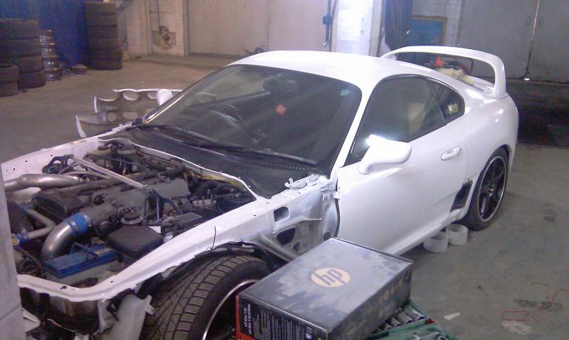 Мечтал о ней очень долго! Ещё до всех Форсажей и NFS (в которой появилась Supra)! Увидел 7 сет назад её на одной фотографии с Сhevrolet Camaro! Она сразу зацепила, и в тот момент меня переклинило на ней! Покупку всё откладывал! То финансы пели романсы, то родня останавливала (типа места мало), но таскания по выставкам и взрывание мозгов приносят свои плоды Характеристики машинки: Выпуск: июль 1997 Цвет: белый Двигатель: 2JZ-GTE (280л.с.) Коробка: V160 6MT Руль справа Подвеска занижена довольно сильно Что стояло на машине в момент покупки: Подвеска Cusco zero 2, глушитель SR (поразил воображение размерами), магнитола Kenwood, распорки стоек передних и задних Tanabe spec, Капот пластиковый (похож на VeilSide), крылья пластиковые, обвес, диски Volk chellenge (Спереди 17Х9 и зад 17Х10) резина 245х45 перед и зад 285х40. И поехал в JSC! там её полностью проверили! в том числе и битую морду! сказали что в целом машина в достаточно хорошем состоянии! заменил все жидкости, тормозные диски, колодки! затем оказалось что течёт бачёк омывателя, и пробита трубка кондиционера и дырка в его радиаторе! все запчасти заказал! Когда всё поменяли наконец решил испытать её! чуть не умер от её разгона! а управляемость ..... вообще финиш! вот фото: ![]() Да Да Да фото с дачи Фото с Автоэкзоники'08 (до этого уже участвовал там на тазике в 2006-2007): ![]() Далее последовала авария ... как некоторые уже знают здесь, в меня въехала девушка на фокусе: Недавно починился! сделали просто супер! сейчас жду клыки на задний бампер! Отдельное спасибо Алексею, Роме (Sky), Кириллу (Casper) из ToySport и Диме(Disen) за то что познакомил с ребятами! Респект! Затем поменял магнитолу, теперь стоит Sony XAV-W1, Установил фильтр Apexi power intake, и поменял интеркулер на Greddy! фото: Также решил ездить и зимой т.к. сейчас зима не такая как раньше! Поменял диски на Kosei magnum R18 на резине Pirelli sottozero Планы грандиозные Ещё фоты: http://foto.mail.ru/mail/djmad/ http://foto.rc-mir.com/fotoalbum931430.html Сообщение отредактировал mad - 31.1.2009, 16:46