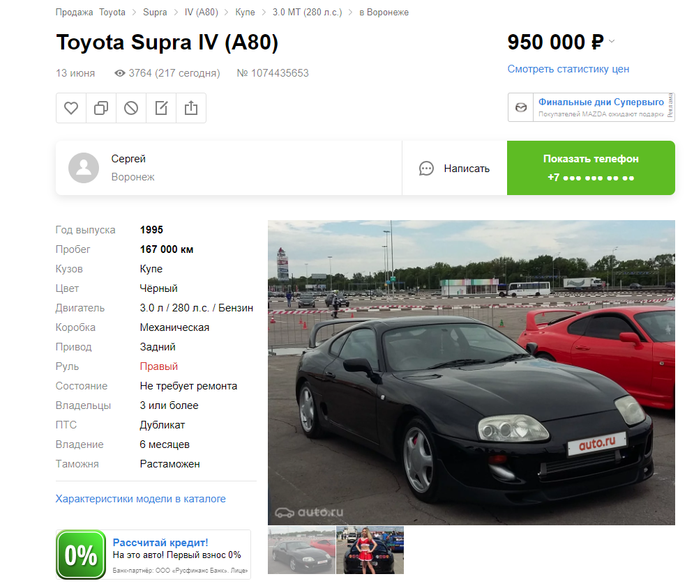 Всем добрый вечер! хочу приобрести первую для себя Супру и наткнулся вот на это объявление https://auto.ru/cars/used/sale/toyota/supra...35653-c460fbac/ Может кто знает, что подскажет?