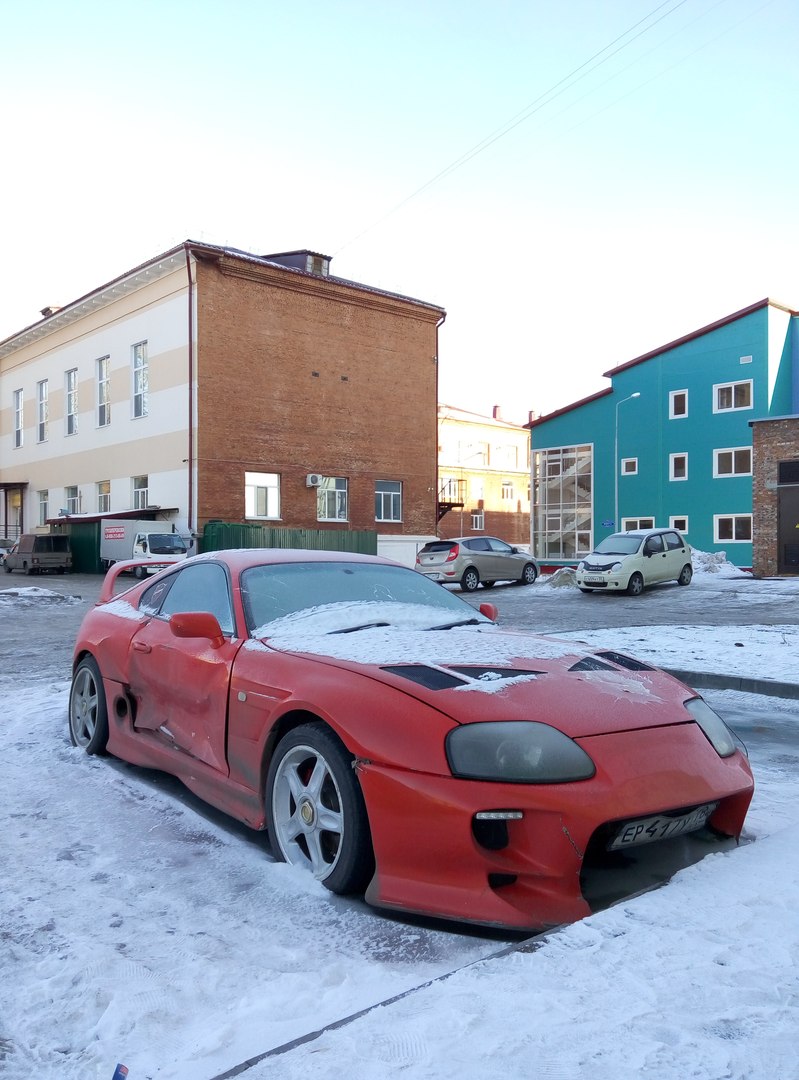 Машина на данный момент сейчас в поисках переднего бампера) История у машинки достаточно богатая , нашел первых и основных владельцев , Степана из хабаровска которые изначально делал копию из форсажа а затем и Сашей из СПБ , В первую неделю машину не светил негде , хотя и видел что сдесь машина проскочила в рубрике "чей туфля" мне кажеться весь Омск точно знал , что именно мне машина досталась На самом деле все достаточно хорошо, документы более чем в порядке, машина снята с учета (постановка\снятие) уже в омске, поэтому проблем в постановке думаю не будет) а это уже хорошо и точнее половина дела в покупке Супры Далее мотор стучит, дверь купил, цвет будет красный (самый красный) глянец БортовичОк на Д2 https://www.drive2.ru/r/toyota/457067534496040297/ Форумы не оч. люблю за неудобность \постоянные зависание и тому подобное , наверное по этому зарегался здесь еще с год назад) но так ни одной темки и не написал , да и Супры не было - чего писать то История покупки: Жил я не тужил - да Супру хотел 3 года, и вот момент сижу на работе, в телефоне всегда открыт дром с поиском 80ки.... просто ради интереса ну и пофапать на машинки в продаже.... и тут выходит ОНА http://omsk.drom.ru/toyota/supra/23951766.html совещание , а уже вечер часов 7 , на улице темно, тачка стоит на стоянке закрытой - не вариант смотреть ваще , договор с продованом на утро 9 утра БЕССОННАЯ первая ночь, поиск денюжек - нашли 100к, утро нашли еще 50к осмотр.... БЯДАААА машина полутруп. Акум спыжжен как заводить , ставлю свой акум , завелась с полтычка но постукивает мотор... в голове - КРУТАЯ Сам продован меня отговаривает, потому что нехозяин а барыга! Понимая что тачан конструкор, и соответственно ему не интересно продать тачку в городе, а так кто ни будь из другого города купит - отправит и черт с ним) ну и ладно, Посмотрели поехали домой думать... точнее денюжки искать - нашли остальные 60к Звоню \ звоню ска не берет он ладно через 15 минут у тачки , я -ок едем за ней родимой) приехали погрузили на эвик и до автосервиса, так колеса накачали помыли с керхера быстренько а на след.день сам уехал на ней до гаража Вот такая вот история, принимаете в ряды супроводофф здесь я постараюсь почаще заходить, но в основном на D2