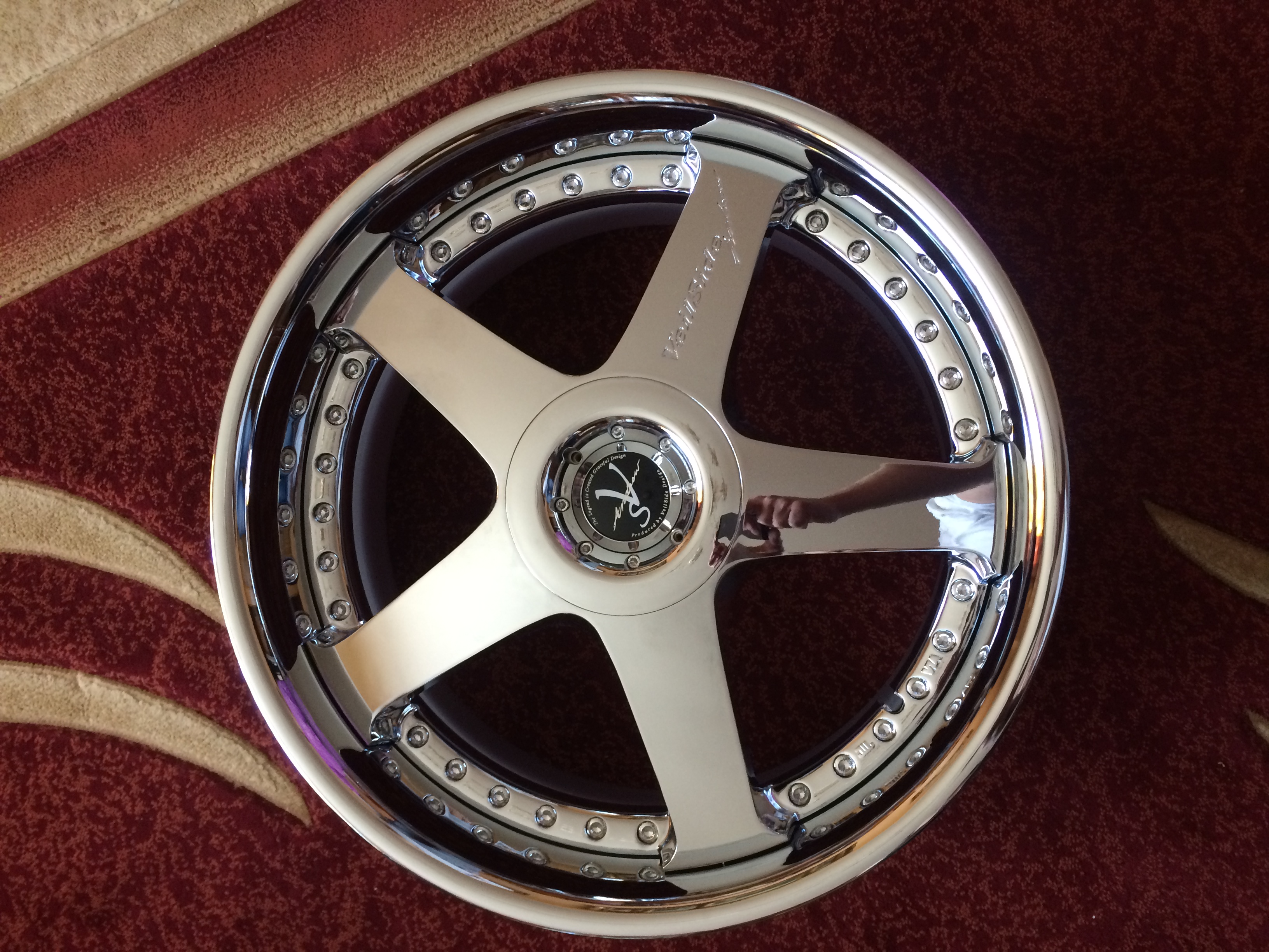Диски конечно крутые. Но какие то странные. Veilside andrew racing evolution 2 спицы шлифованые и покрыты лаком, на солнце переливаются. Боковины спиц покрашены серой краской. И самое главное гайка по центру в заглушке. На этих ее нет, просто лэйба.