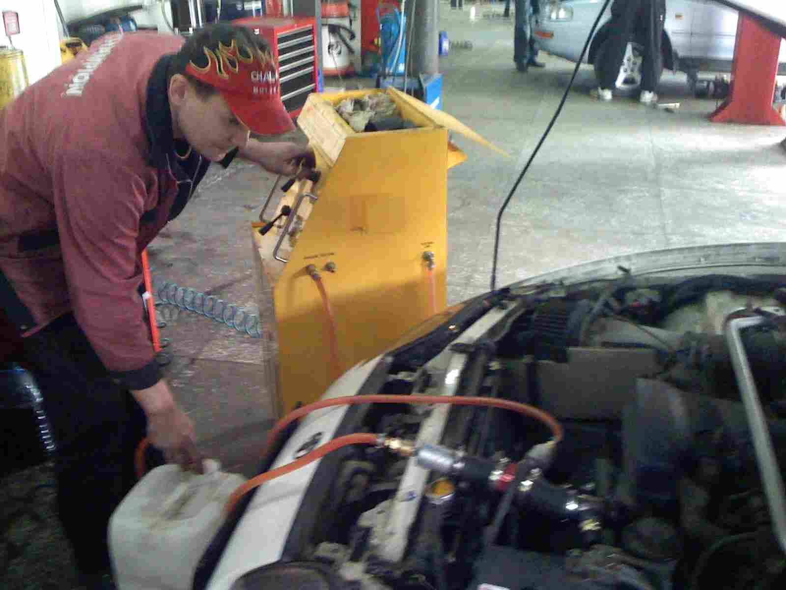 Заранее закупили: электровентиляторы с Nissan Cefiro датчик температуры от GOLF VR6 3х контактный контакт с куском проводки для подключения датчика изготовили переходник для установки датчика в верхний патрубок из нержавейки 2 шт. универсальных электромагнитных реле 2 шнурка с предохранителями на 30А проводов обычных поролоновый уплотнитель для дверей пачка сигарет и MAXI чай Сначала разобрали все, что было. Игорь промыл мой снятый радиатор Прикинули вентиляторы от Цефирика на него. Изготовили крепление вентиляторов к радиатору. Установили все это дело. Промыли всю систему хорошенько и залили новую ОЖ. За одно заменили жидкость в ГУР с хорошей промывкой %) Потом выгнали машинку во двор и начали сами соединять проводку. Все установили, проверили, оттестили и поехали за карбоновым капотом. После установки всего машинка стала ехать бодрее, ощущения поменялись, охлаждается все отлично (тьфу тьфу тьфу) %) ОГРОМНОЕ СПАСИБО ИГОРЮ "2JZ" ЗА ПОМОЩЬ ))) За счему подключения электровентиляторов тоже спасибо TO "2JZ" ![]() -------------------- |