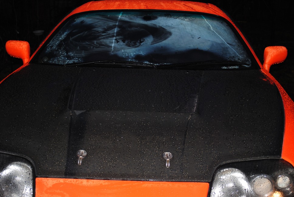 Отлично, ещё одна оранжевая в Вейлсайде с карбоновым капотом и тонированная наглухо.