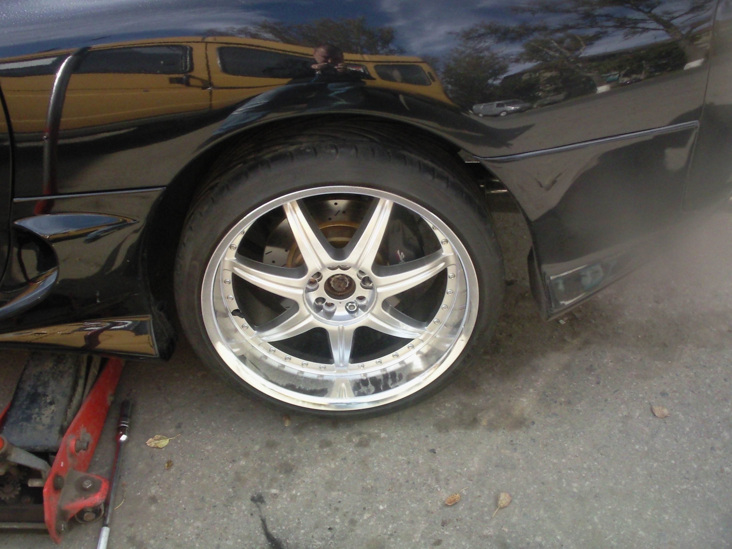 Резина 285/30. Все это очень впритык. Причем внутренняя плоскость крыла отрезана. |