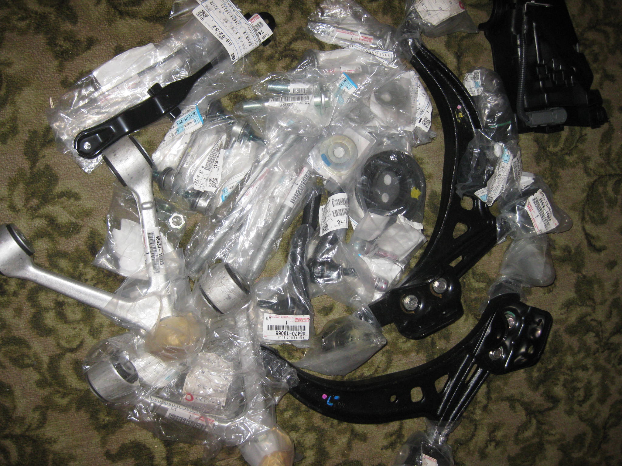 рычаги, наконечники, крепёж, короче, надеюсь, вся передняя подвеска кроме стоек и опорников, ну и по-мелочи еще, всего на 50, на экзисте былоб дешевле, но получилось так, что товарищ у японца просто хотел спросить, а тот не долго думая в заказ отправил... зато 100% ждм)