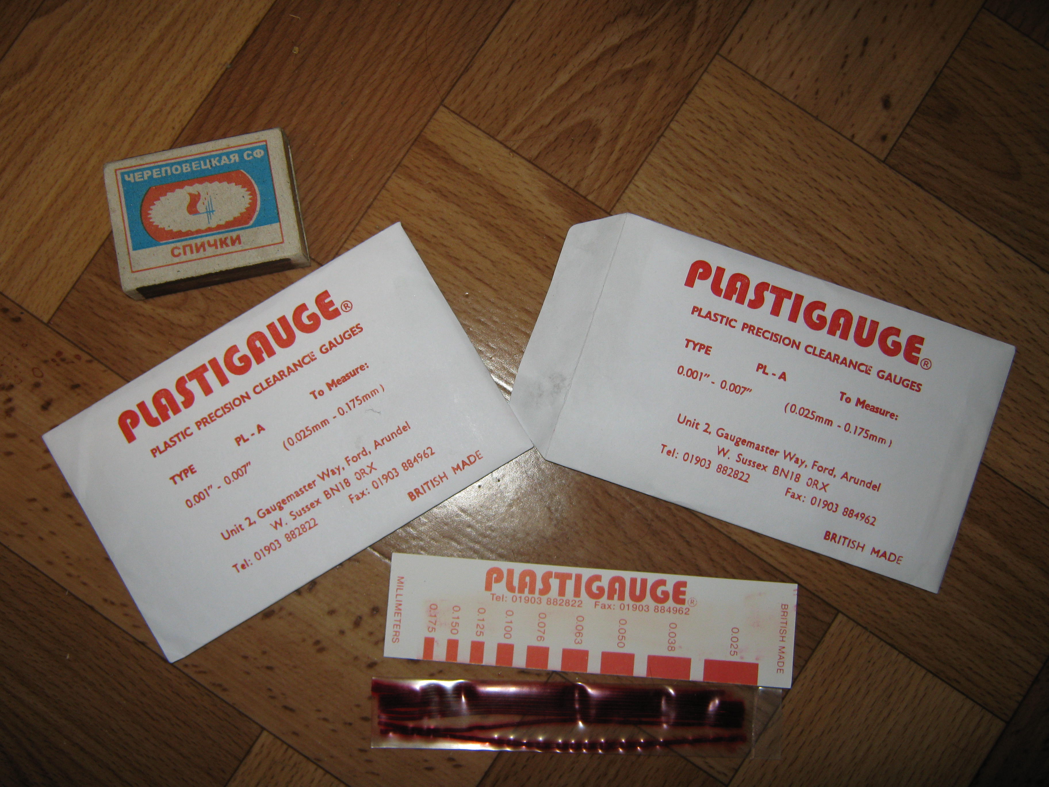 Нужен был plastigage. В России он дорогой (1000 руб). На ebay.com было куплено 2 пакетика за 551,62 руб., включая доставку. (т.е. примерно 270 руб. за пакетик с доставкой). Было оплачено 03.07, пришло на почту 04.08, шло из Англии. Оплачивалось виртуальной Визой через Киви (qiwi.ru). Посылка пришла письмом.