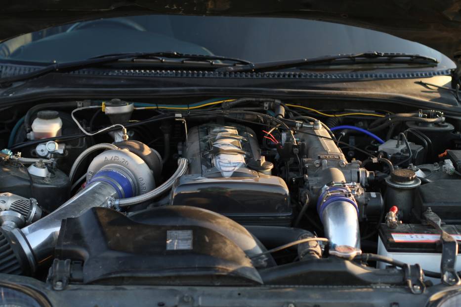 Далее Манта параллельно делал слудующее: корячил турбину под капот, ставил даун-пайп, красил и подгонял обвес