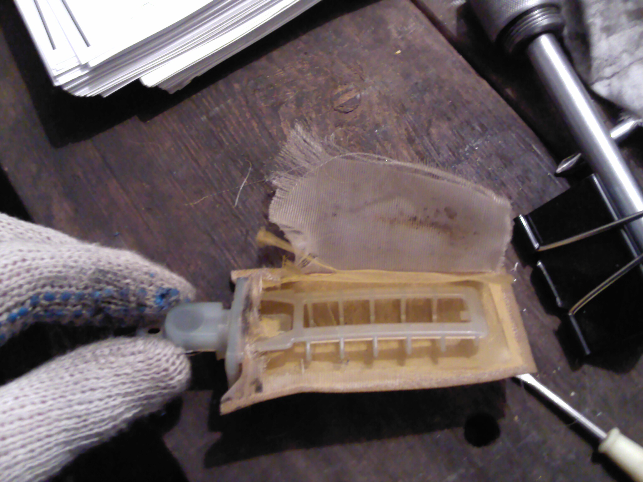 Поставил на место, после мойки, куллер. Поменял топливнй фильтр тонкой и грубой очистки. Спец инструмента для снятия топливного насоса небыло, поэтому пользовался отверткой и молотком Препарировал фильтр Надел новую "сеточку" По ходу работы возник вопрос, чисто из любопытства, а что это за белая емкость в баке (на фото ниже), противоотливная? она на всех Супрах стоит? |