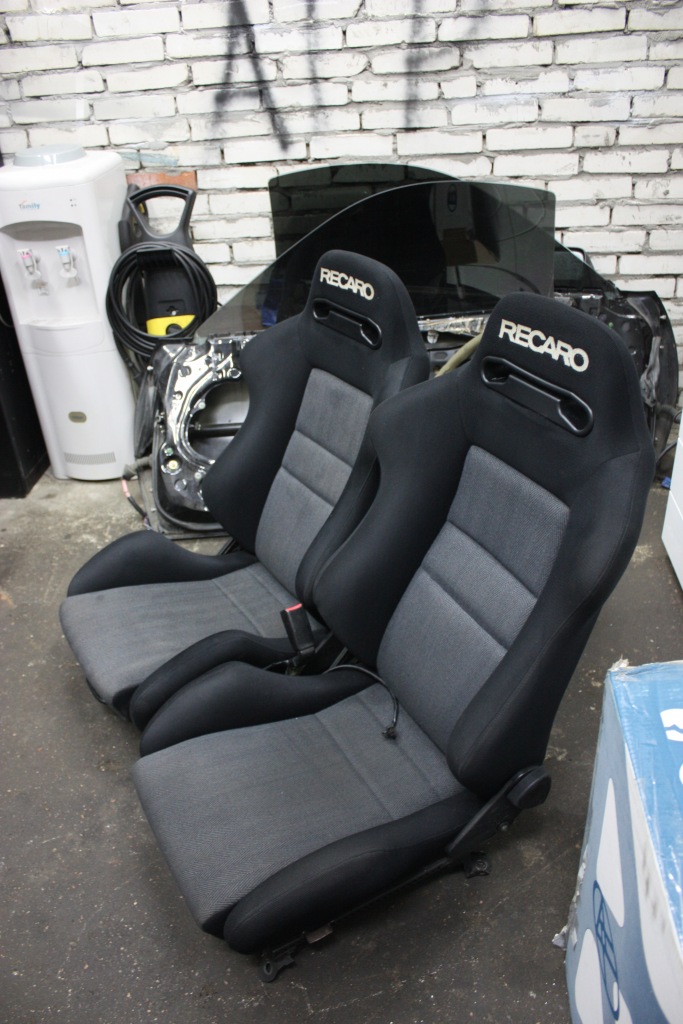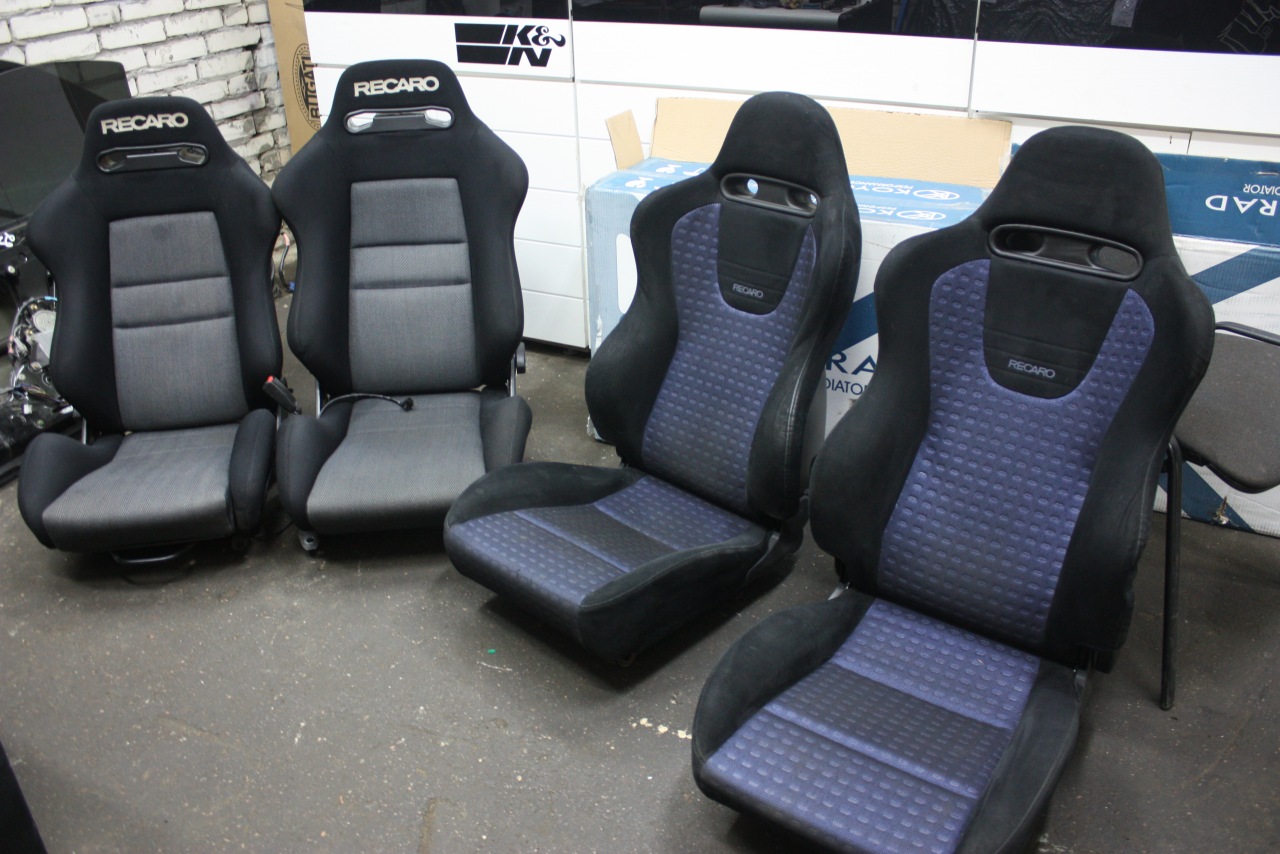по бачку сард пока не дома не ответить, если реально интересно, пиши в личку, буду дома напишу, а вот и мой стратегический запас рекаро:)) тк со спортивных сидух перешел на ковши- собственно вот то чем готов делиться) слева купешные, состояние 4.5, справа с эво 8, состояние 4с минусом, и те и другие ставились в рх7, салазки соответственно под мазду)